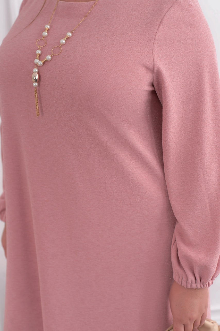 Элегантное и минималистическое платье, очаровывающее своим деликатным блеском люрекса. Модель имеет полукруглый широкий вырез горловины, диагональные вытачки на груди, красиво подчеркивающие силуэт, и удобные карманы в боковых швах. Свободные рукава, собранные на запястьях резинкой без манжетов, придают легкость и женственность. Без застежек – только комфорт, блеск и непринужденная элегантность в каждом движении.