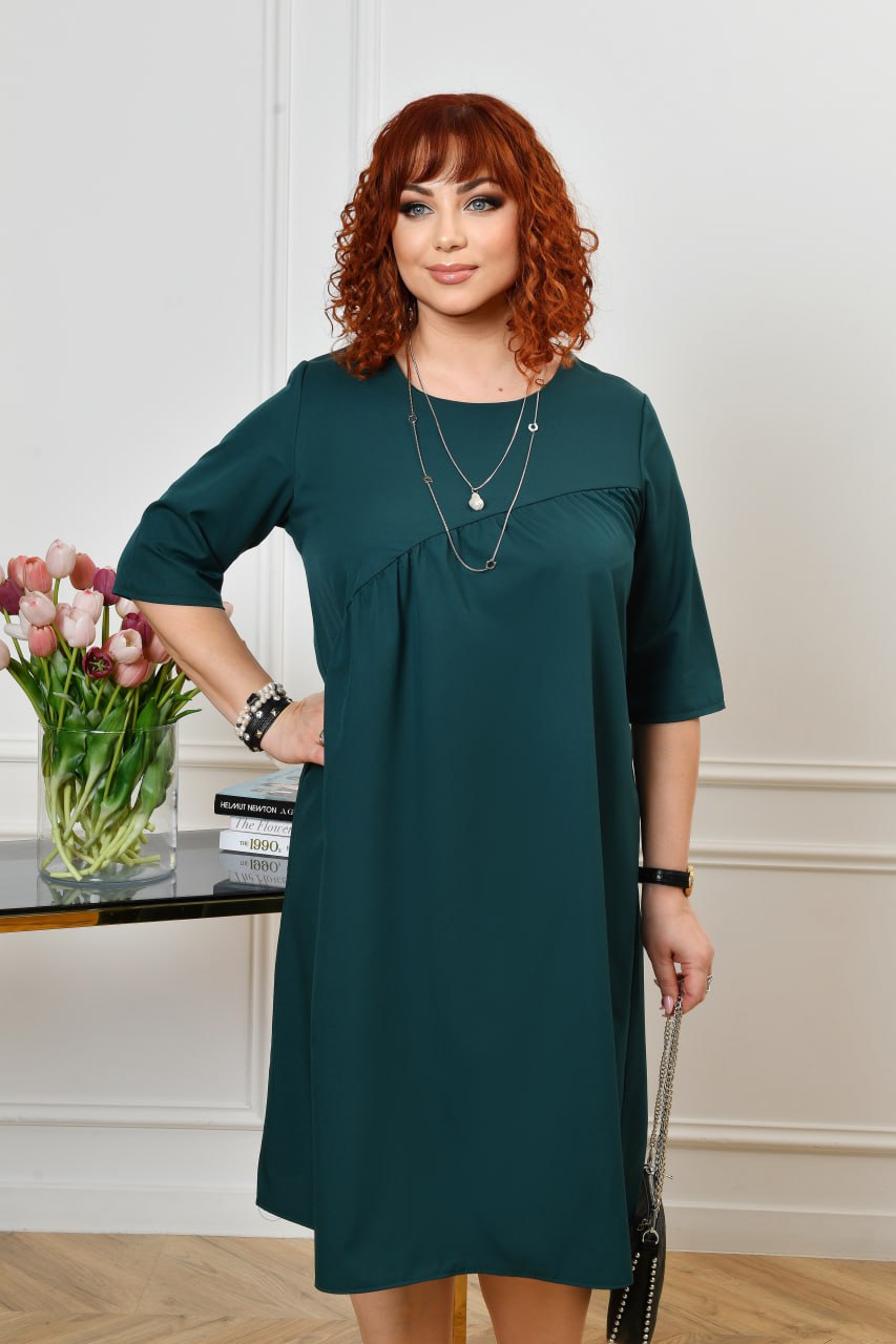 Это изысканное платье большого размера станет идеальным выбором для тех, кто ценит комфорт и элегантность в повседневном образе. Изготовленная из мягкого, но не растяжимого софта, она нежно окутывает фигуру, деликатно маскируя все недостатки и подчеркивая естественную женственность.