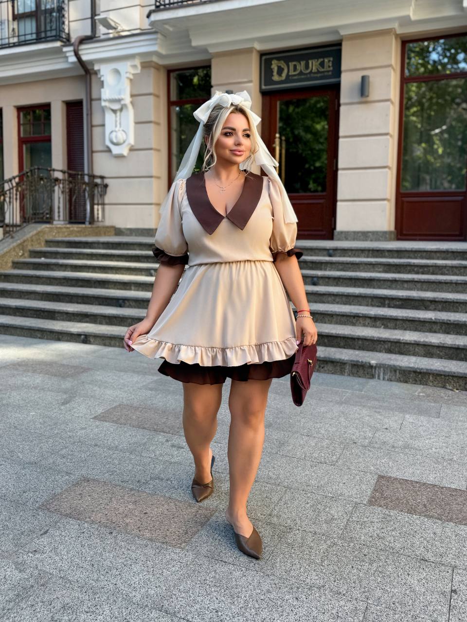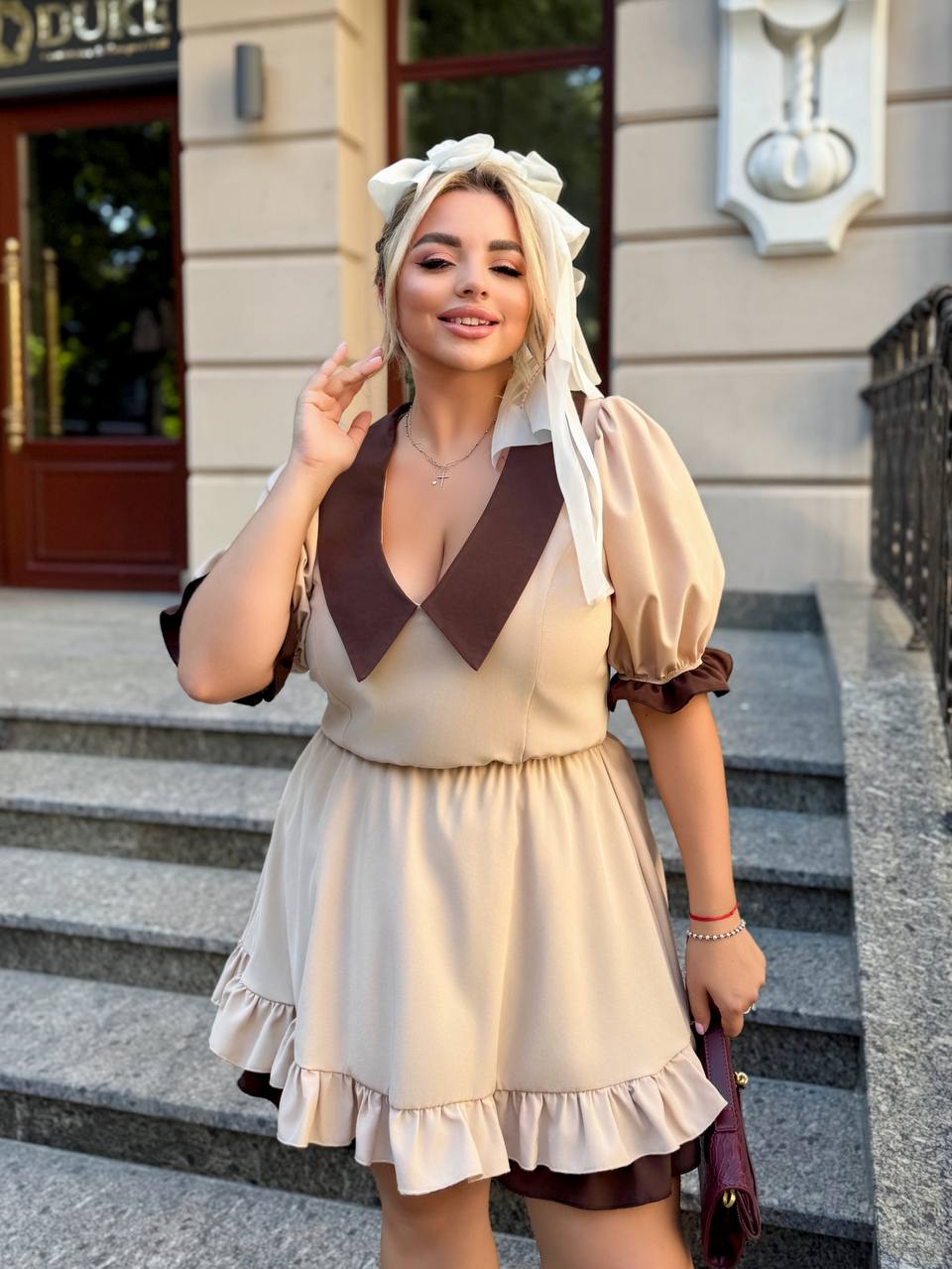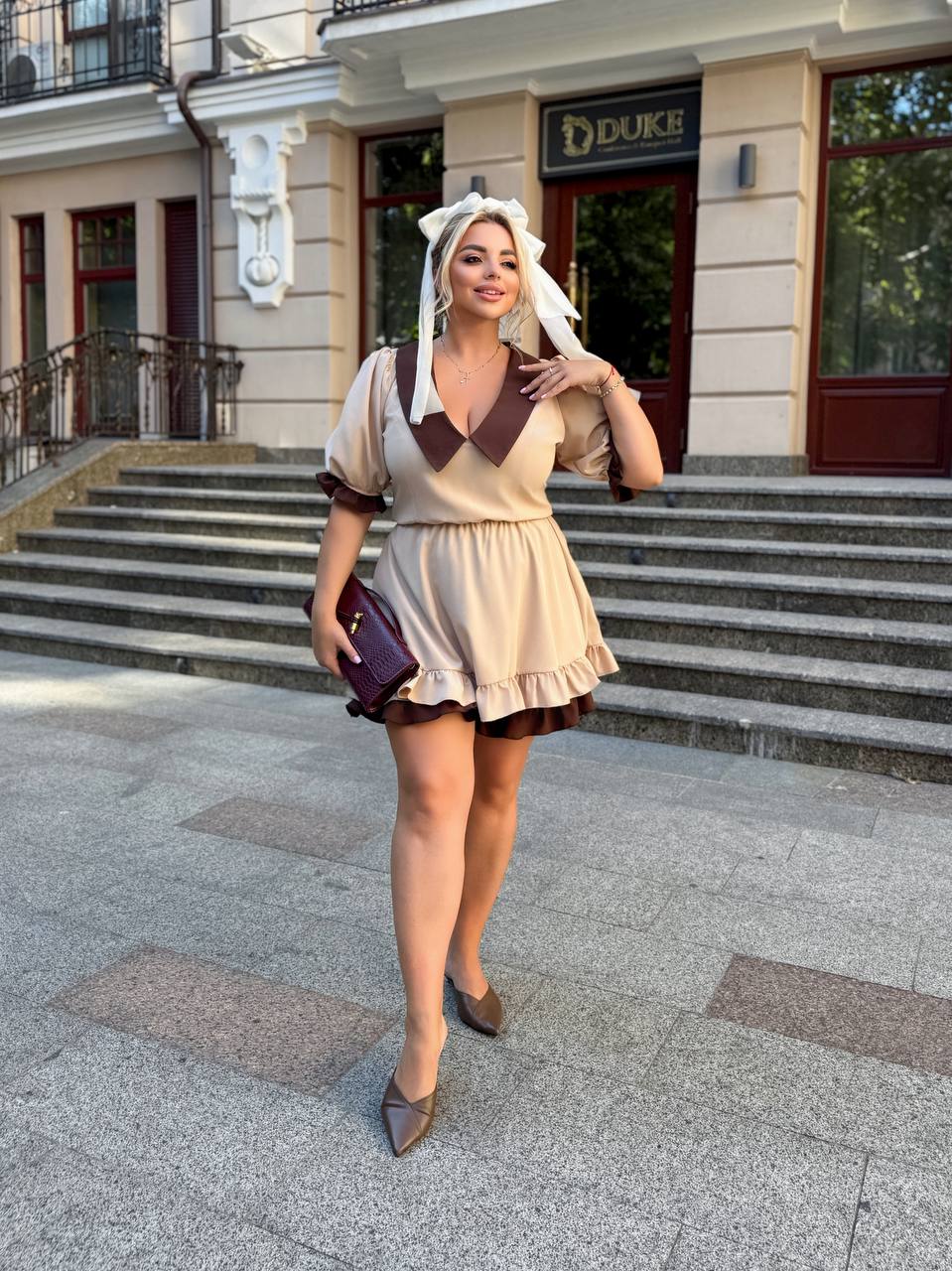 Трендовое платье с шортами, позади шнуровка, подойдет на любой объем груди.