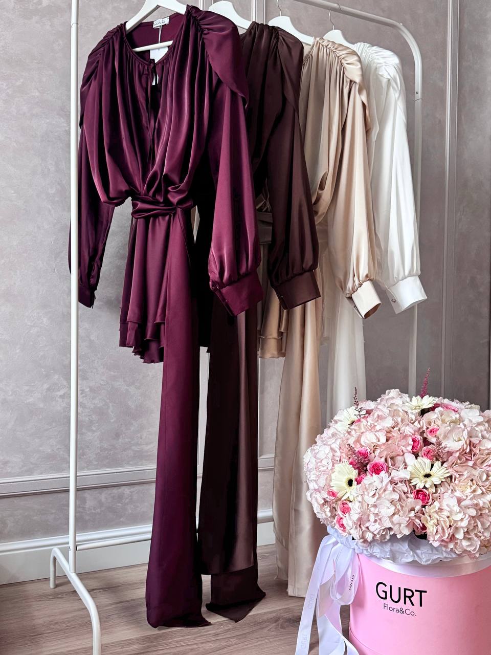 Невероятно легкое платье из шелка Армани, нежно обволакивающее тело. Верх с объемной драпировкой придает роскошь, а резинка на талии с фиксирующим поясом создает идеальную посадку. Под платьем – удобные шортики, которые делают образ еще более комфортным. Дополнительно в комплекте отдельный пояс