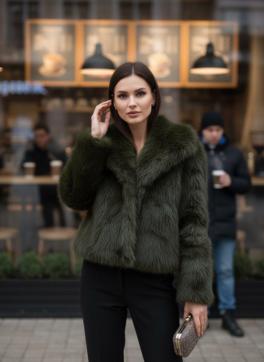 короткая меховая шубка – игривая, дерзкая и бесконечно женственная, словно снежинка в вихре ветра, дарит ощущение легкости и роскоши в мире элегантного стиля и тепла