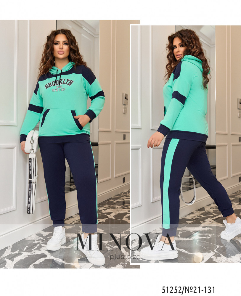 Стильный и удобный костюм с трендовой надписью на груди. капюшон со шнурком и люверсами, большой карман-кенгуру и длинные рукава на манжете добавляют практичность и комфорт. приталенные брюки с манжетом, боковыми лампасами. для весеннего варианта, можно дополнить костюм жилетом и создать стильный комплект.