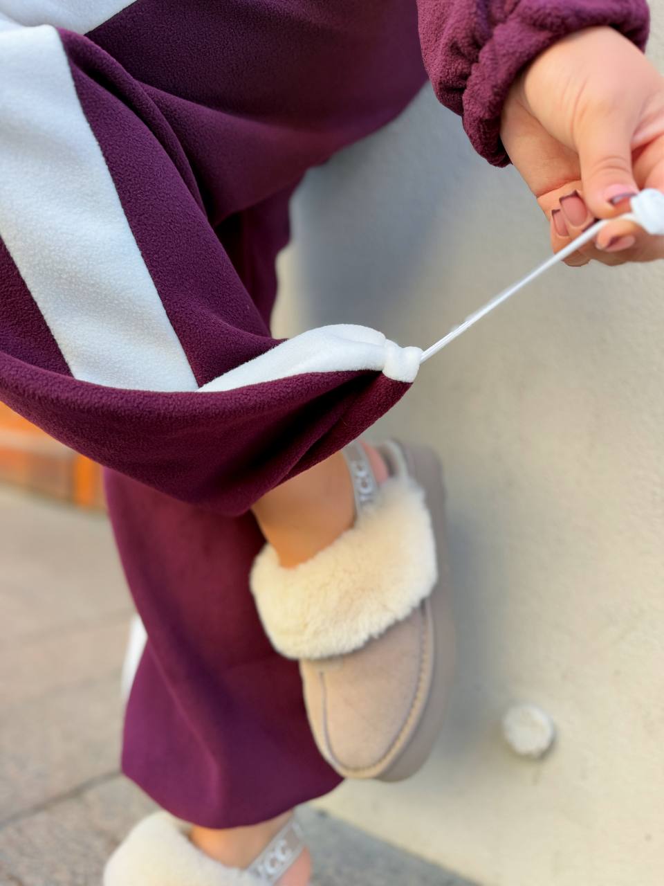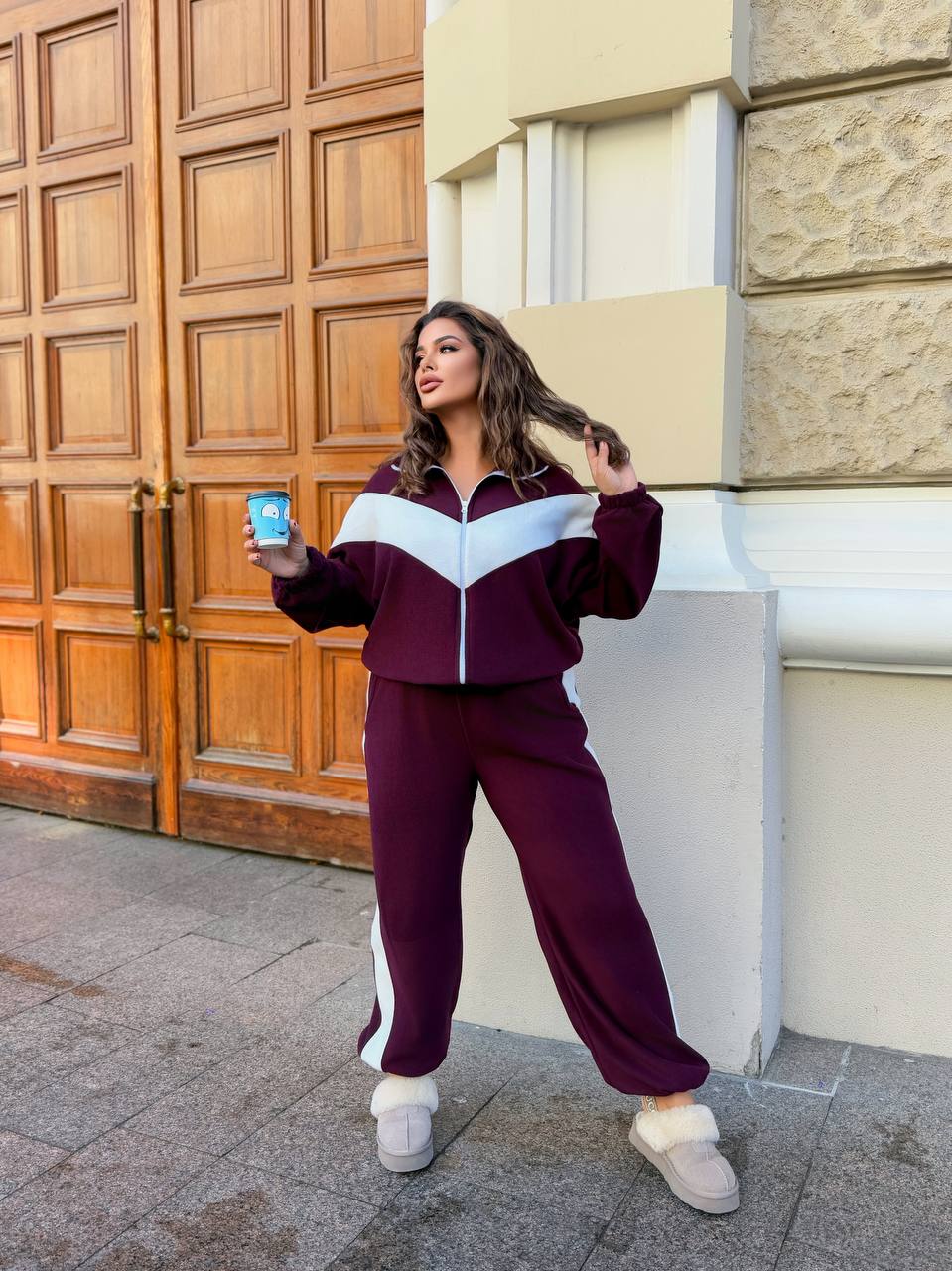 Стильный прогулочный костюм двойка: штаны палаццо + кофта из двустороннего флиса.