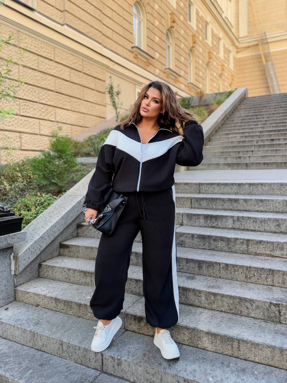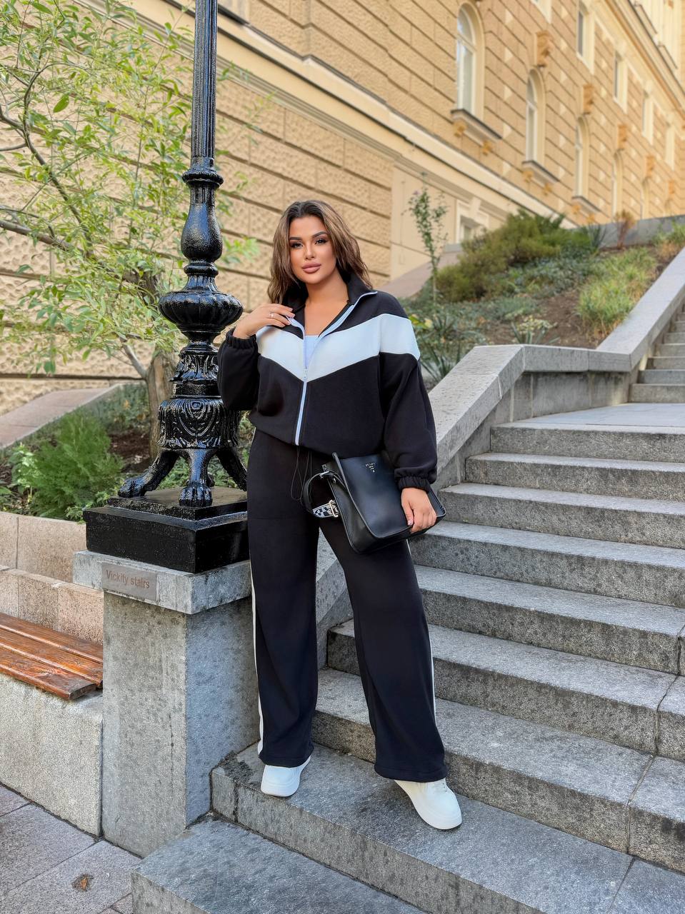 Стильный прогулочный костюм двойка: штаны палаццо + кофта из двустороннего флиса.