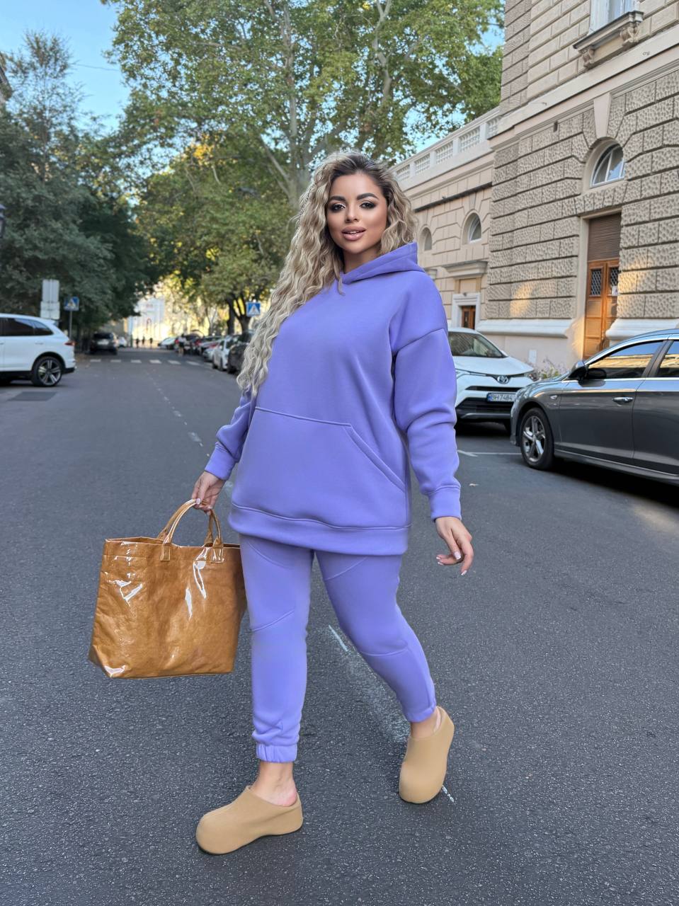 54-56: Ог 134, рукав 50, длина кофты 75, длина брюк 102, бедра 126, талия тянется до 126