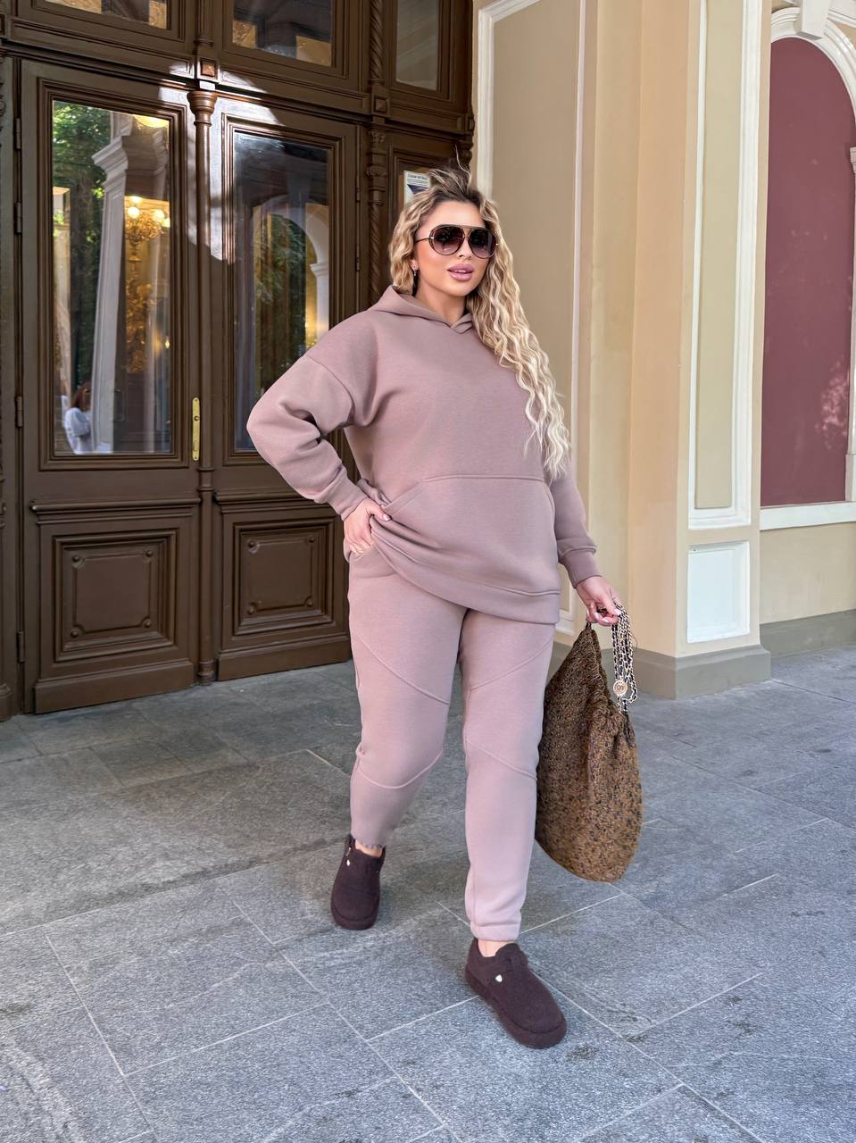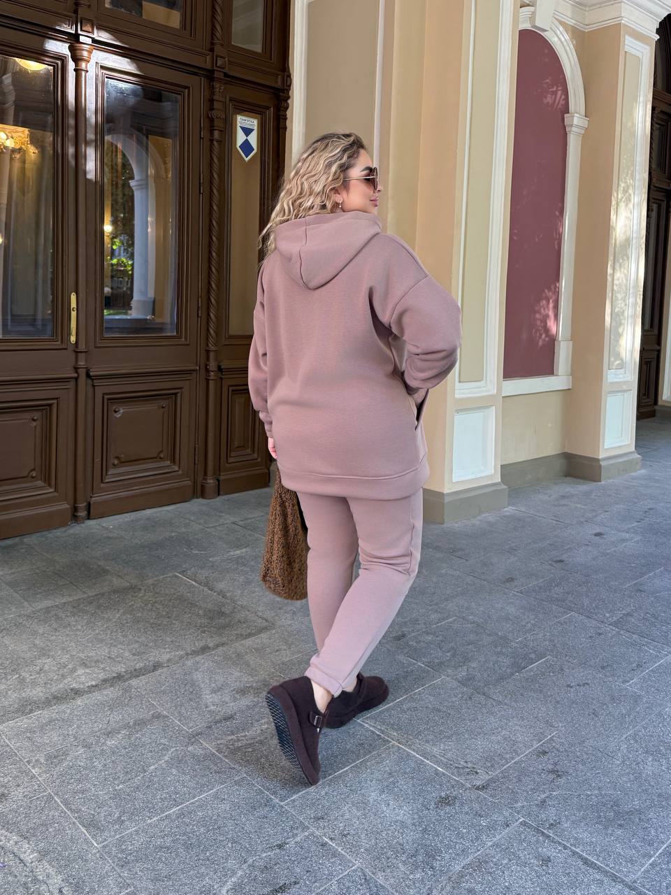 54-56: Ог 134, рукав 50, длина кофты 75, длина брюк 102, бедра 126, талия тянется до 126