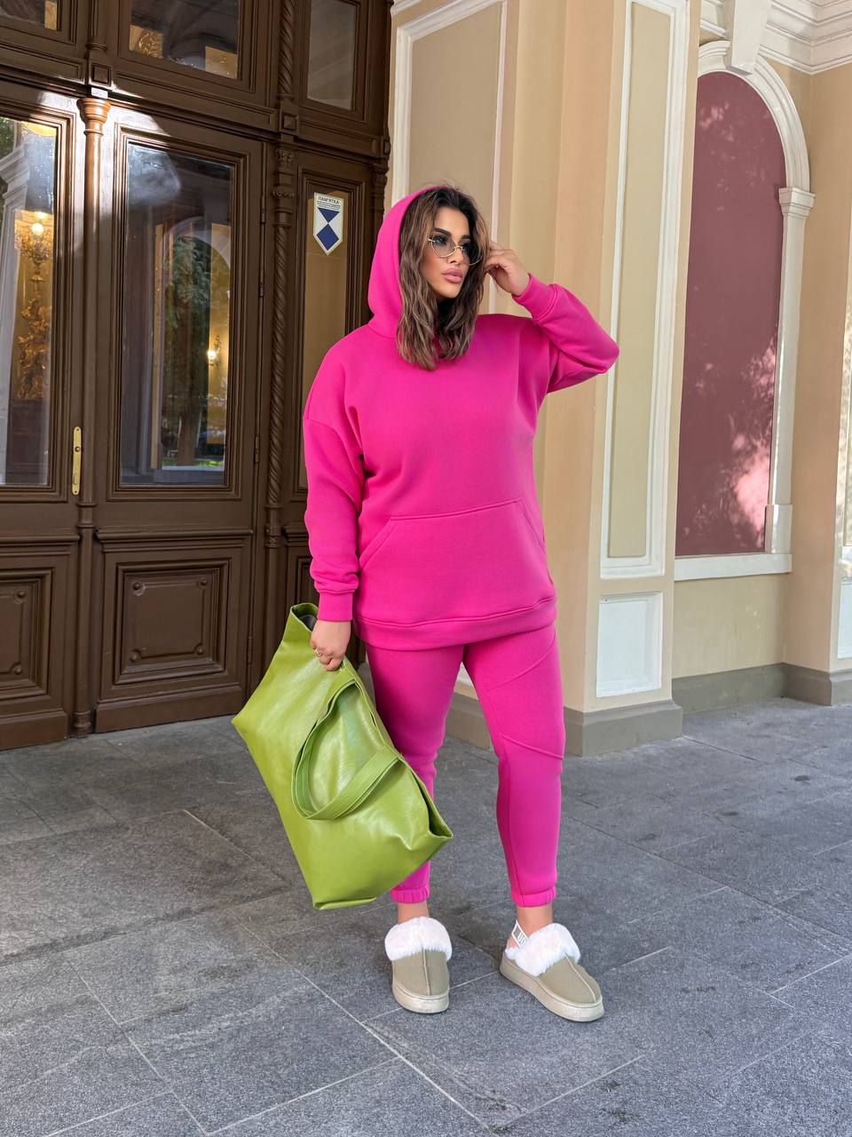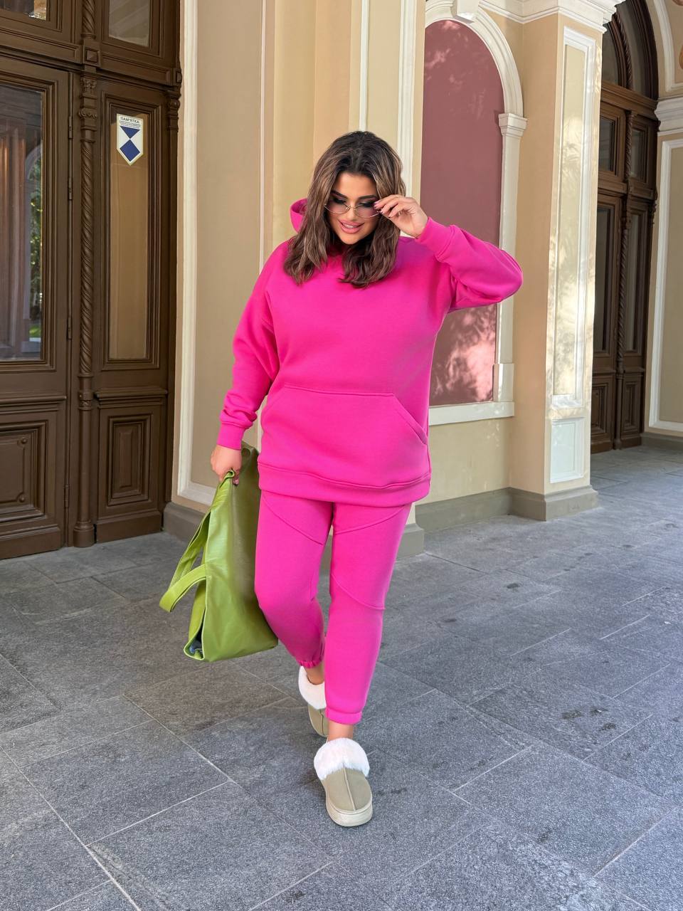 54-56: Ог 134, рукав 50, длина кофты 75, длина брюк 102, бедра 126, талия тянется до 126