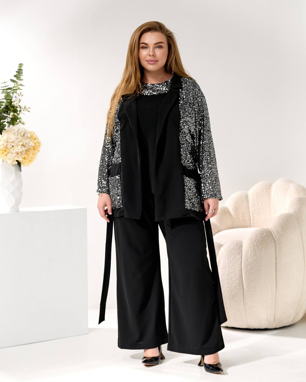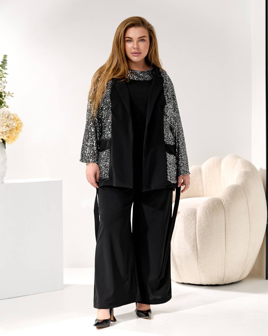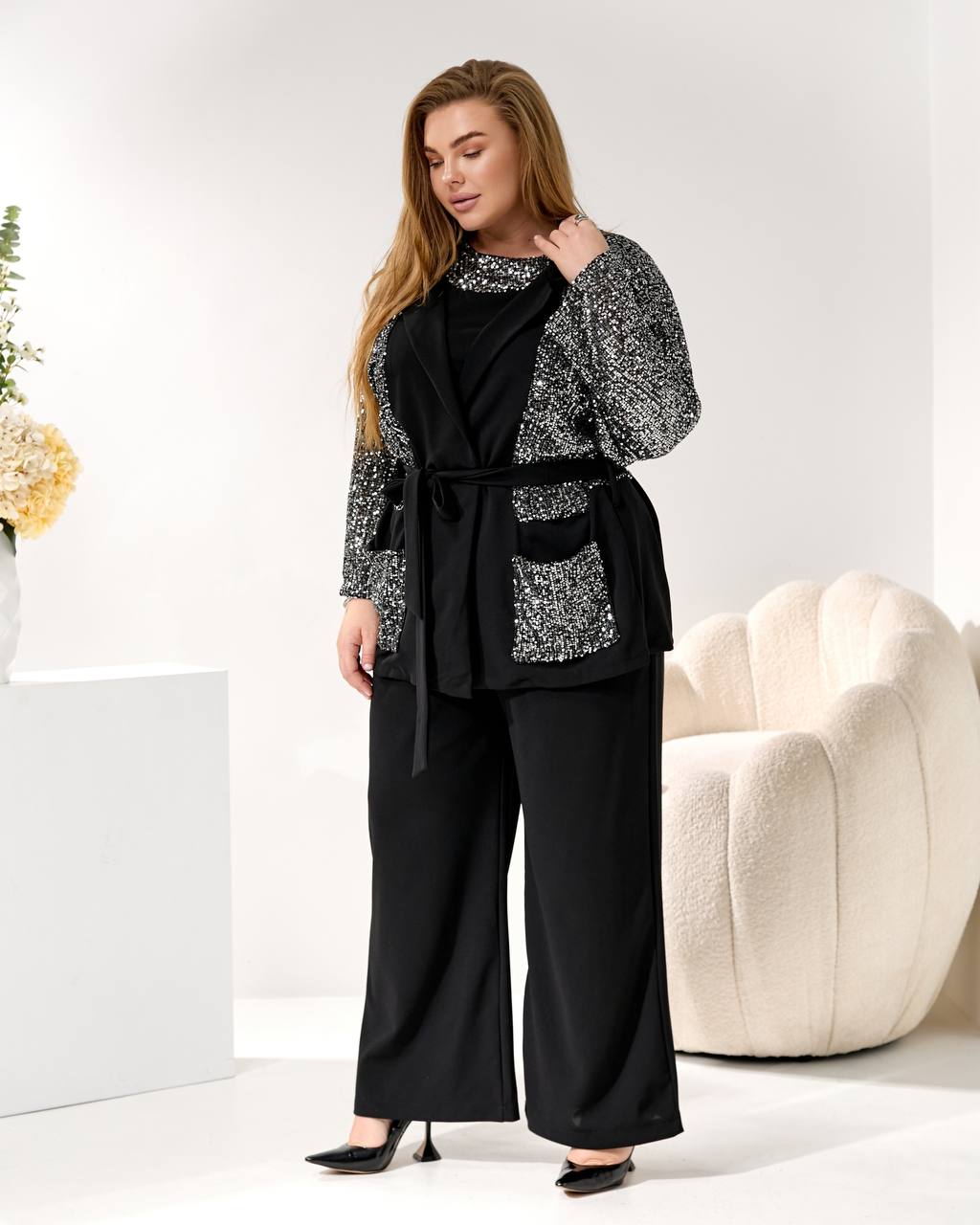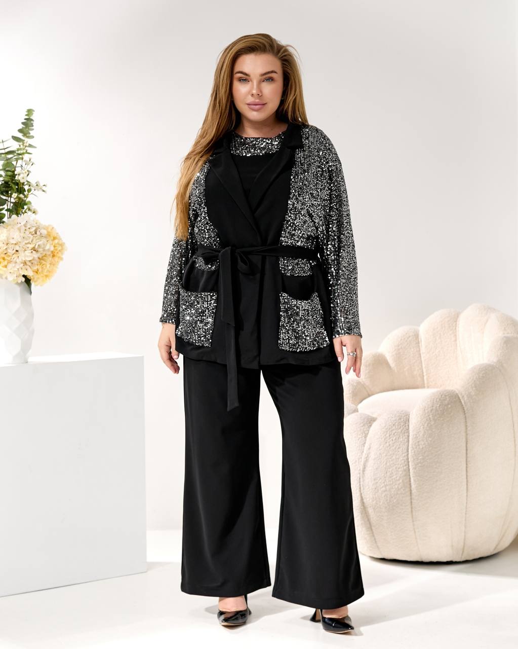 Представляем элегантный и модный брючный костюм, созданный, чтобы подчеркнуть вашу индивидуальность на любом торжестве. Идеальный наряд для корпоратива 🥂, новогодней вечеринки 🎄, дня рождения 🎂 или любого вечернего мероприятия.