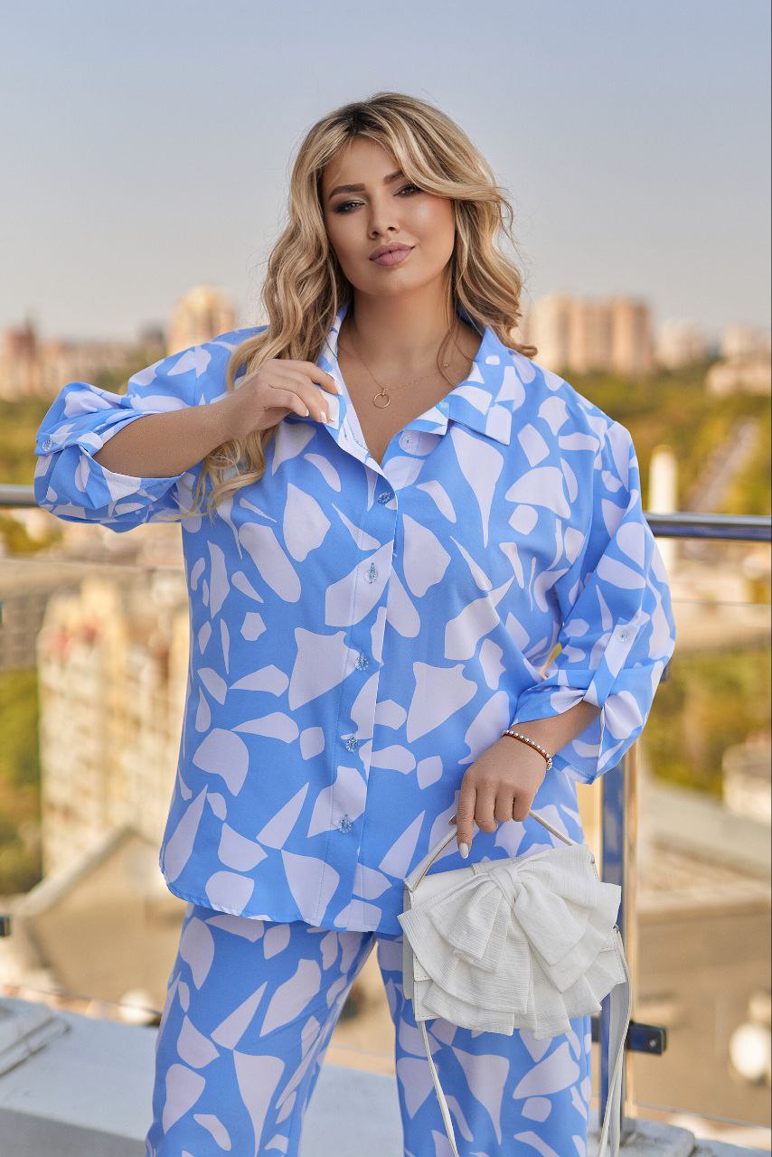 Элегантный костюм, состоящий из рубашки свободного кроя и брюк-Палаццо.