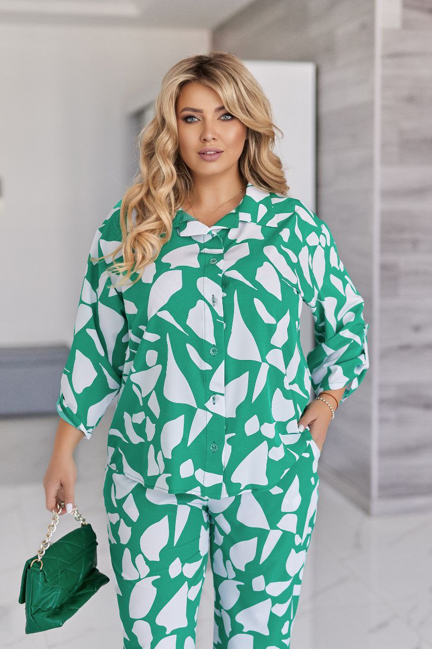Элегантный костюм, состоящий из рубашки свободного кроя и брюк-Палаццо.