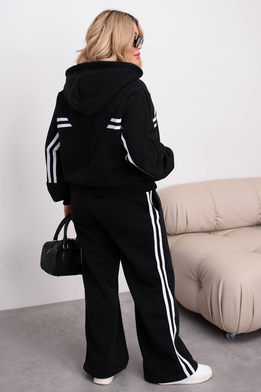 Свитшот на молнии, с капюшоном и карманами, рукав реглан, по рукаву пришивной лампас, брюки прямого силуэта, на эластичной резинке, с карманами в боковых швах и лампасами