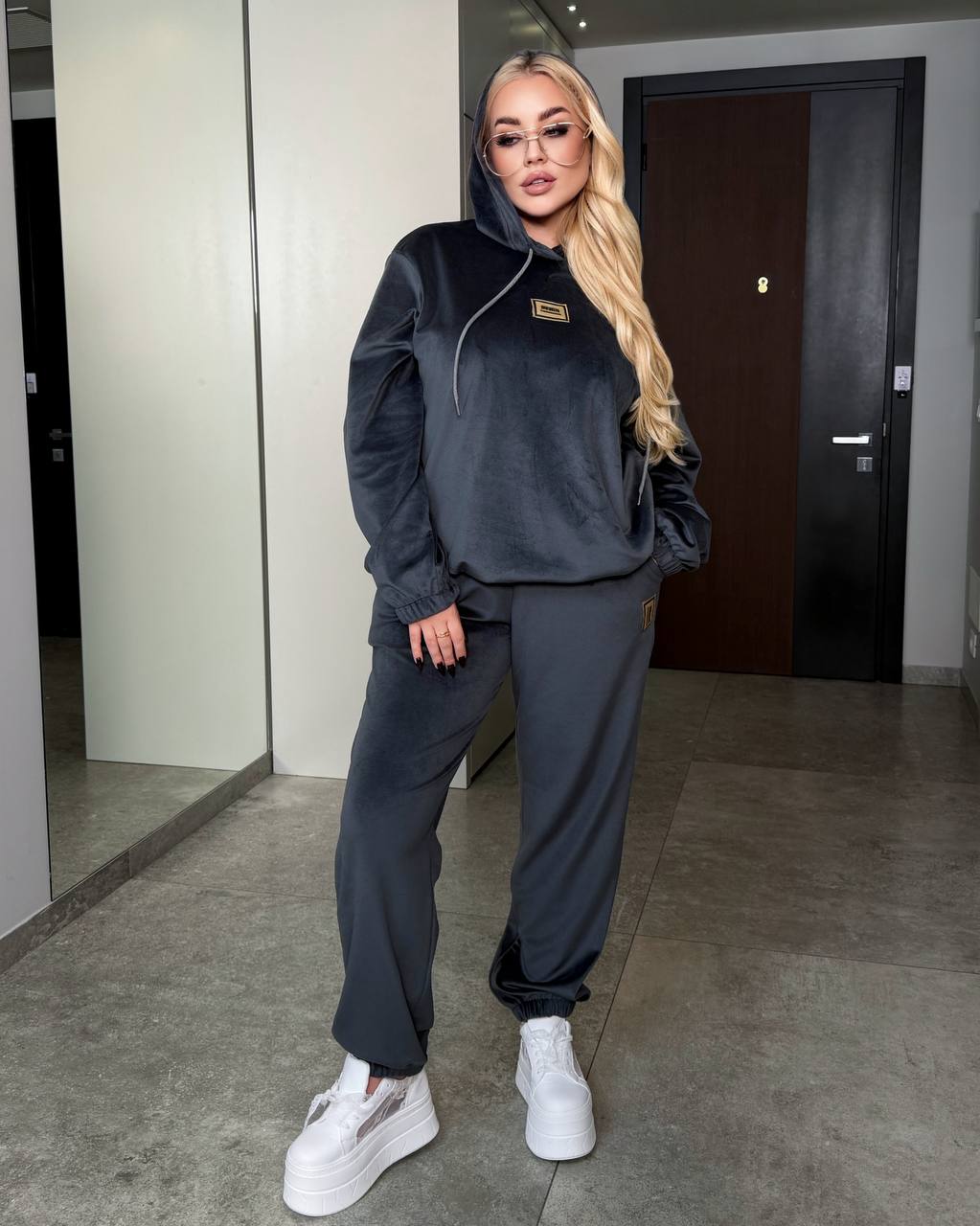 Стильный спорт костюм для прогулок. оверсайз. худи регулируется затяжками по низу.