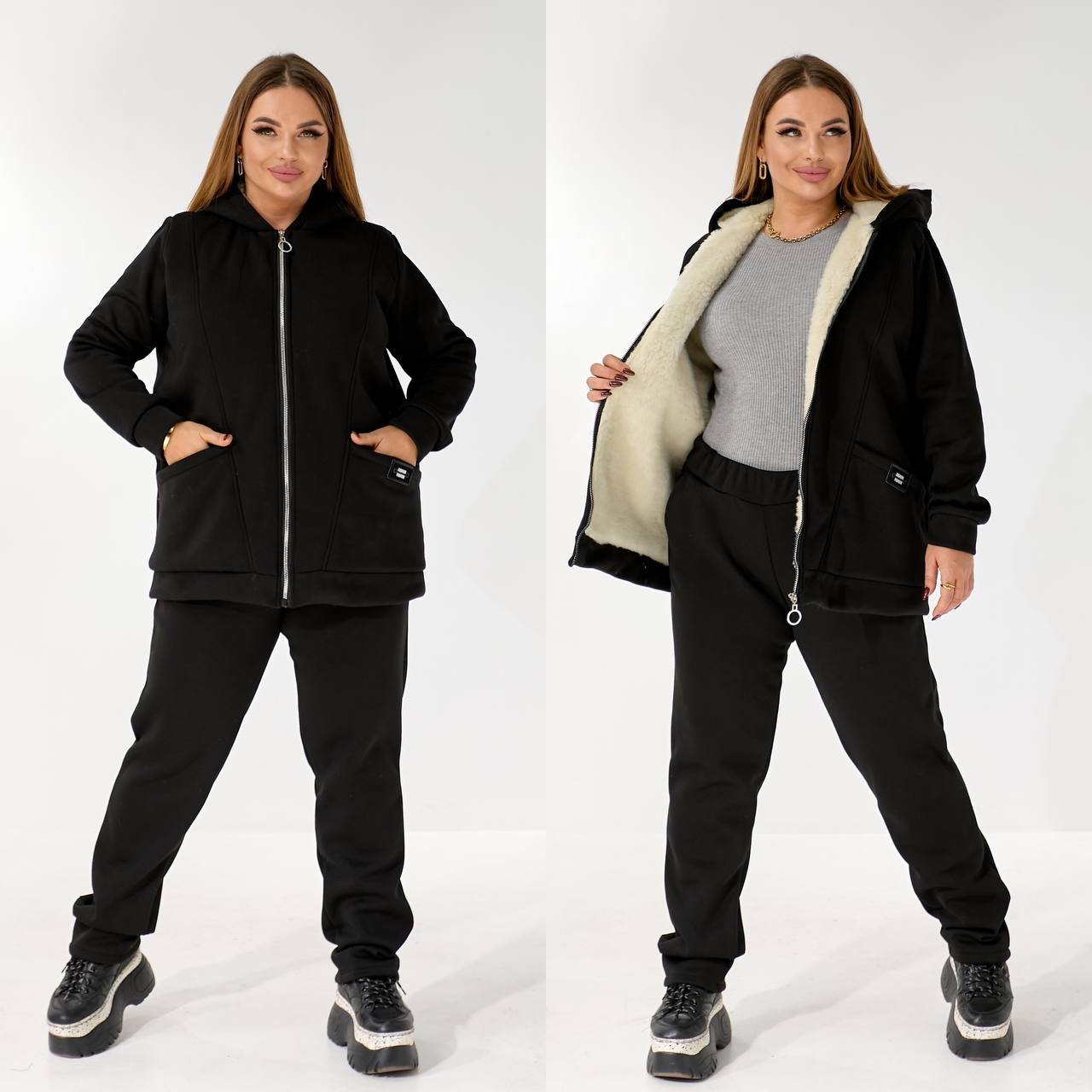 Ткань: трикотаж трехнить начес, подкладка (полочка и спинка, капюшон) искусственная овчина