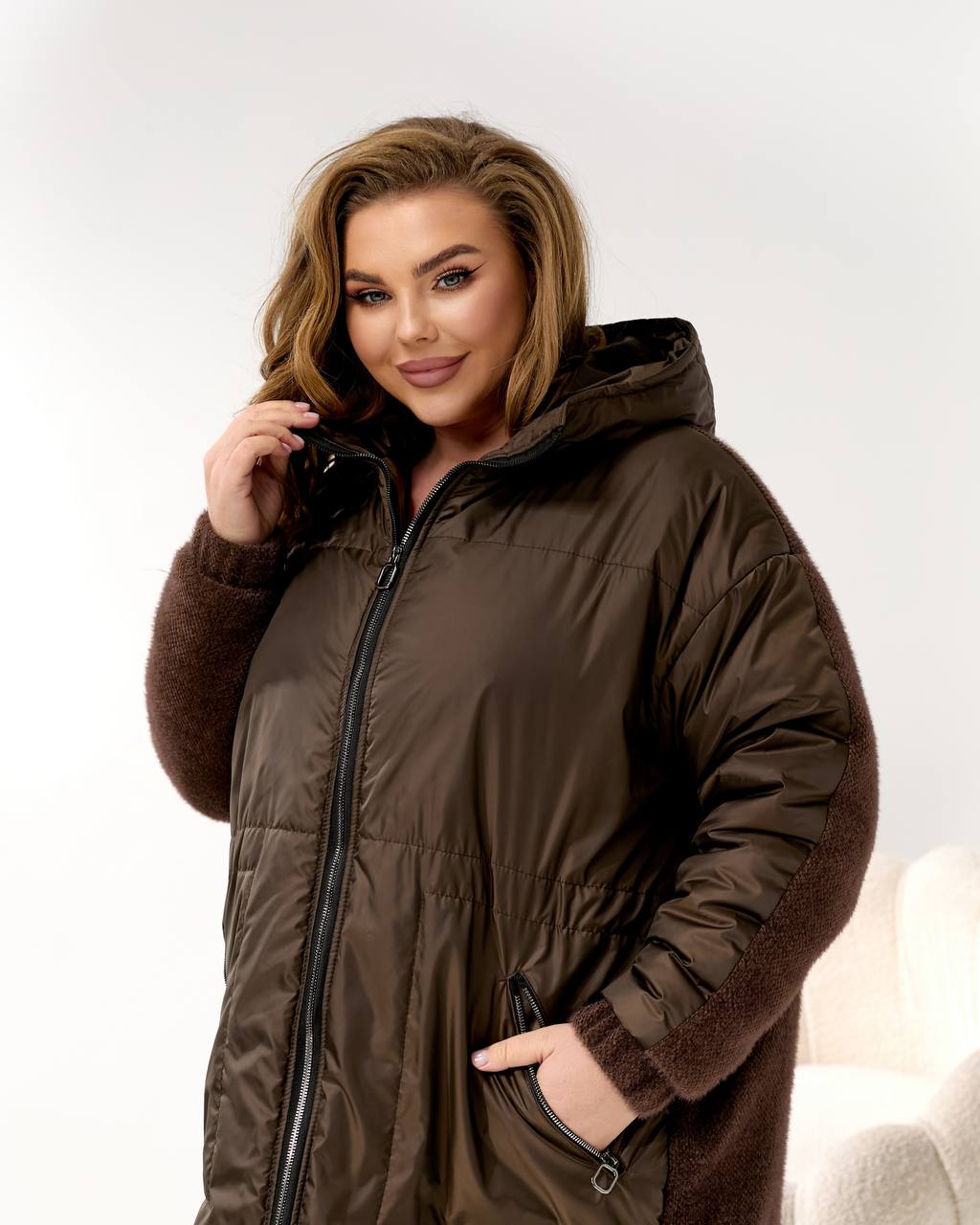 Ткань: куртка комбинированная из плащевки + стеганая альпака на синтепухе 100