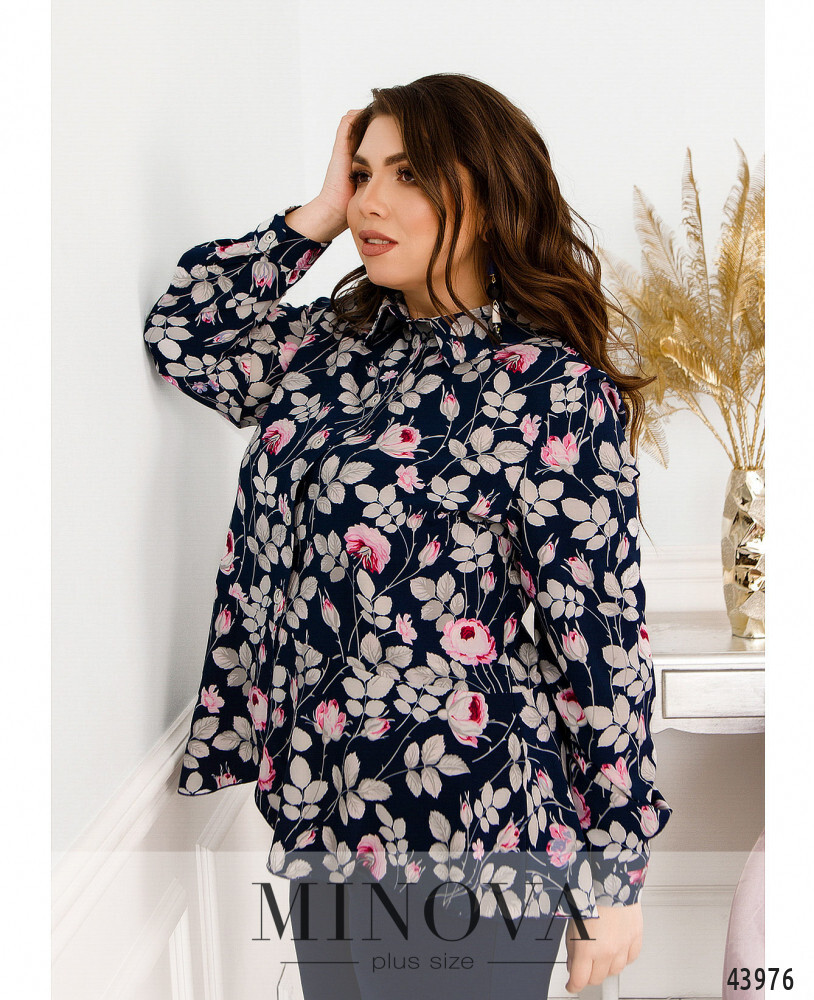 Элегантная блуза батал с нежным принтом, воротничок отложной, спереди - ряд пуговиц на планке. рукава с манжетами, на манжетах по одной пуговке. снизу к подолу подшиты мягкие оборки. на груди вытачки. карманов нет. Ориентировочные замеры по готовому изделию: 50-52 р-р: длина блузки 67-73см, длина рукава от плечевого шва 63см, обхват рукава 40см, ог - 106см, от -108см. 54-56 р-р: длина блузки 69-77см, длина рукава от плечевого шва 63см, обхват рукава 42см, ог - 114см, от -116см. 58-60 р-р: длина блузки 70-74см, длина рукава от плечевого шва 64см, обхват рукава 44см, ог - 120см, от -124см. 62-64 р-р: длина блузки 73-77см, длина рукава от плечевого шва 65см, обхват рукава 48см, ог - 130см, от -132см. 66-68 р-р: длина блузки 76-80см, длина рукава от плечевого шва 65см, обхват рукава 52см, ог - 136см, от -140см. Рекомендации по уходу: машинная стирка при низких температурах (до 40 градусов) *замеры могут отличаться от указанных на +-2см в зависимости от особенностей ткани, техническим особенностям пошива, степенью усадки ткани **в зависимости от цветопередачи вашего монитора, оттенок изделия может немного отличаться ***обратите внимание, фурнитура по изделию может меняться ***в зависимости от партии фурнитура в изделии может меняться