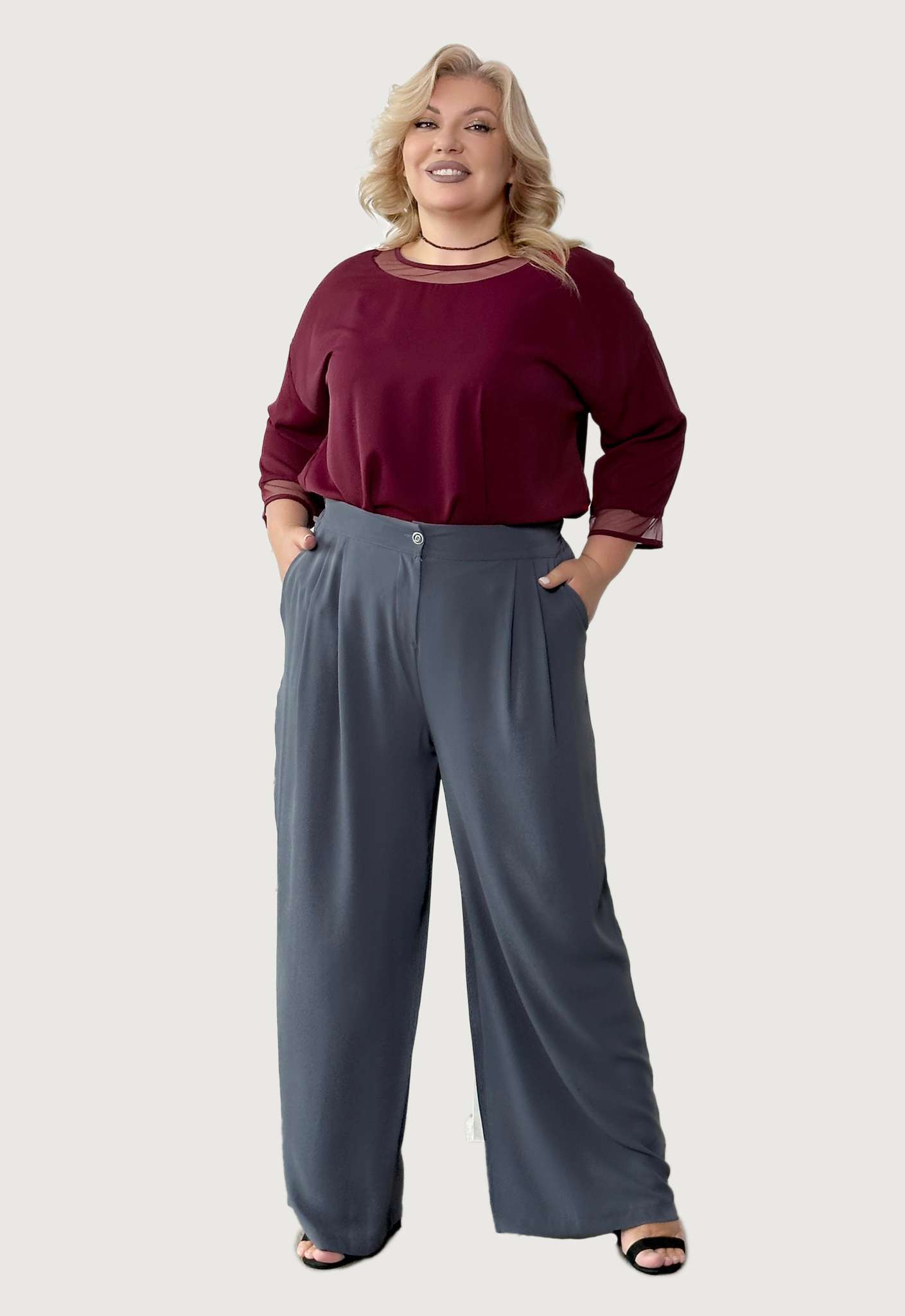 Блузка с круглым вырезом с прозрачной вставкой бордовая