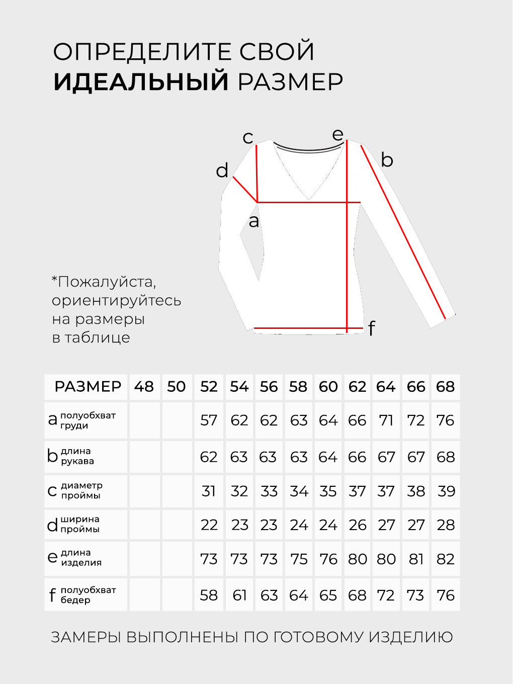 Просим обратить внимание, что в таблице приведены замеры фигуры, а не изделия.