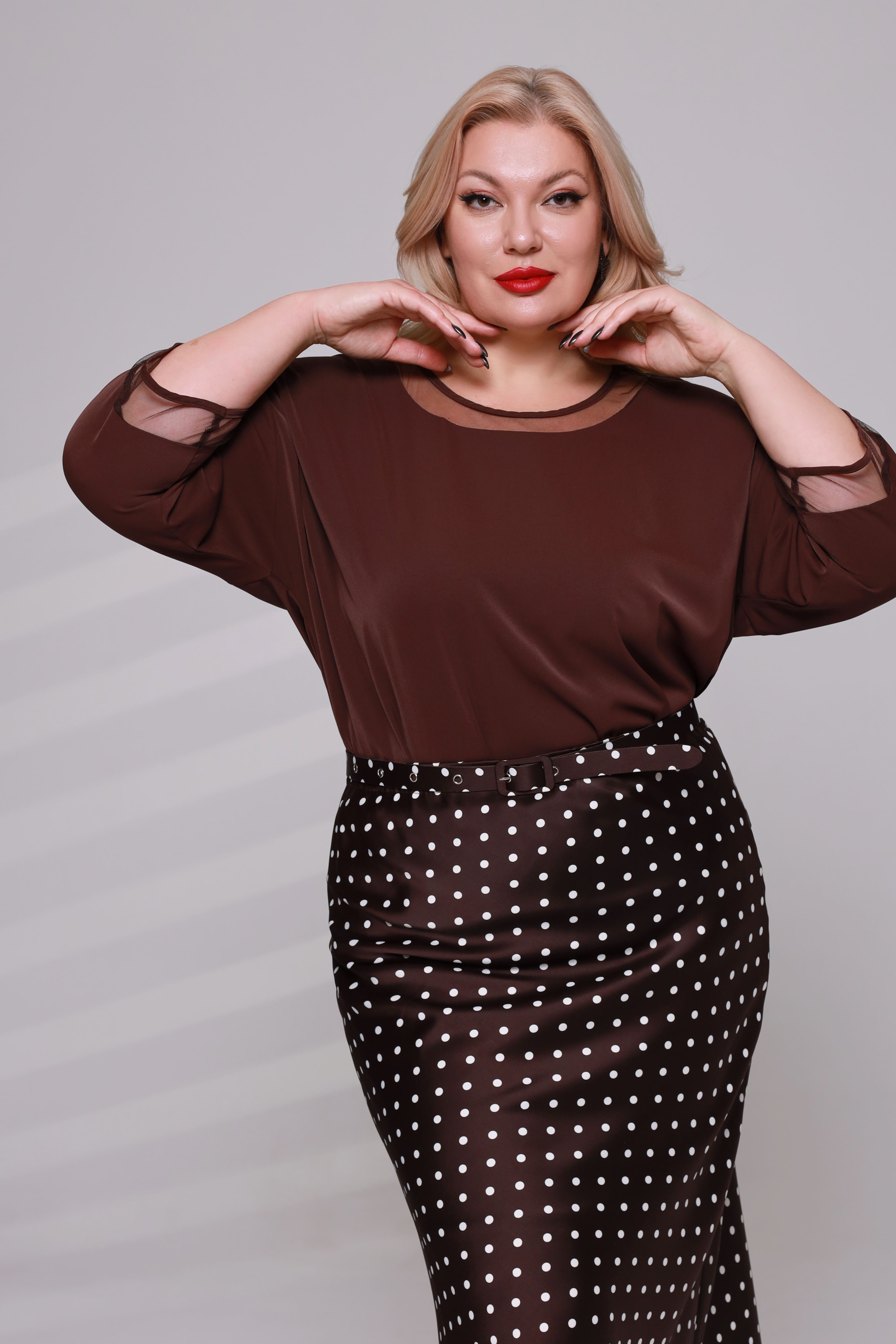 Блузка с круглым вырезом с прозрачной вставкой шоколад