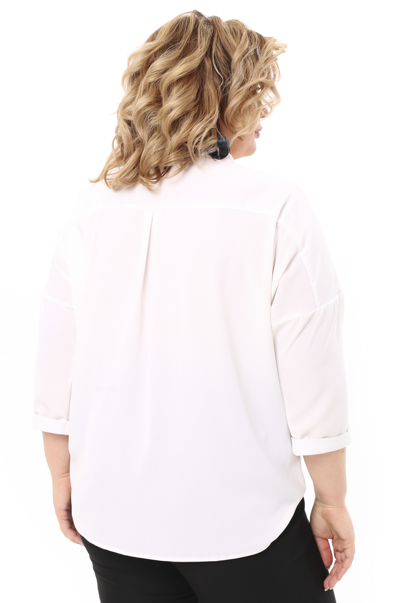 Блузка прямого кроя из мягкого струящегося материала. глубокий v-образный вырез с запахом оформлен декоративными пуговицами. приспущенные рукава-реглан длиной 3/4 с небольшими складками по низу оформлены манжетами. кокетка и декоративные складки по спинке способствуют оптимальной посадке по фигуре. свободный силуэт блузки искусно обыгрывает фигуру и не сковывает движений. отлично сочетается как с брюками, так и с юбками.