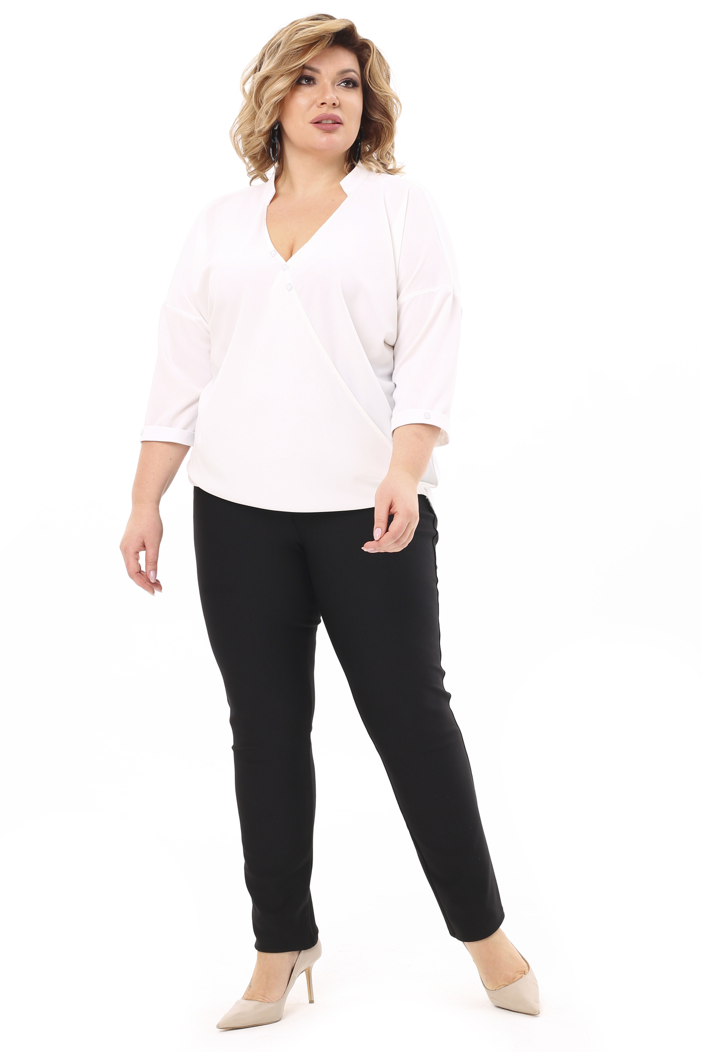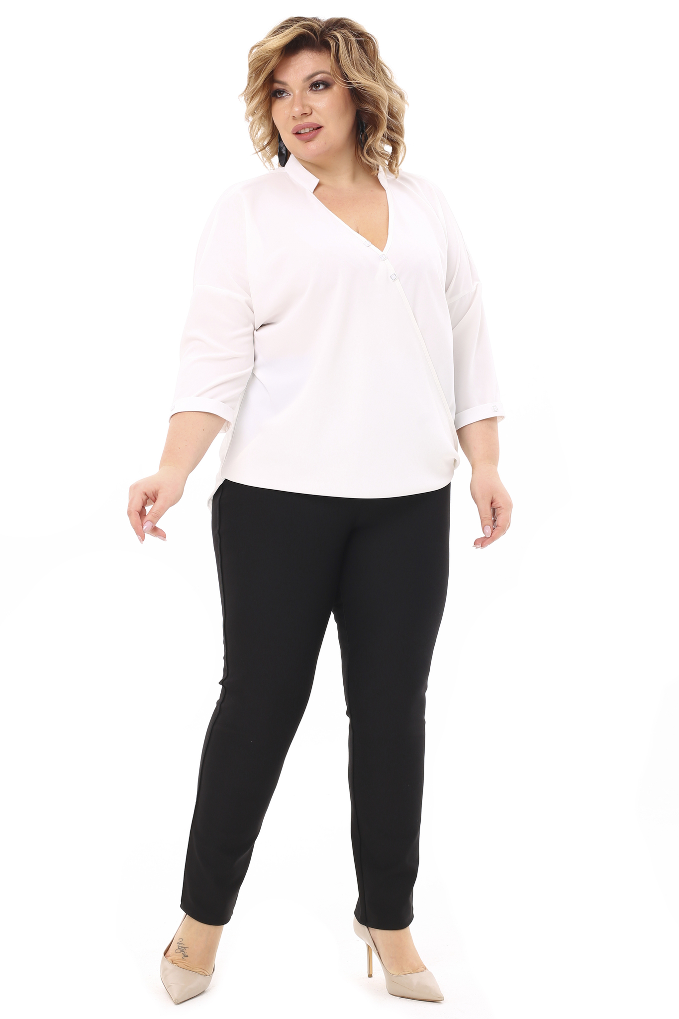 Блузка v-вырез с запахом с пуговками на груди белая
