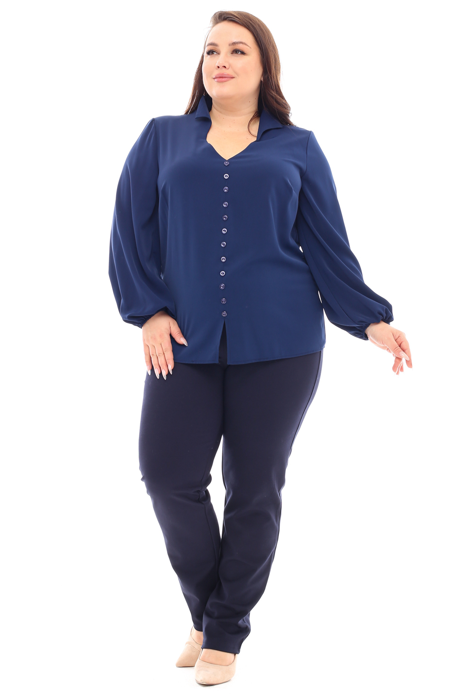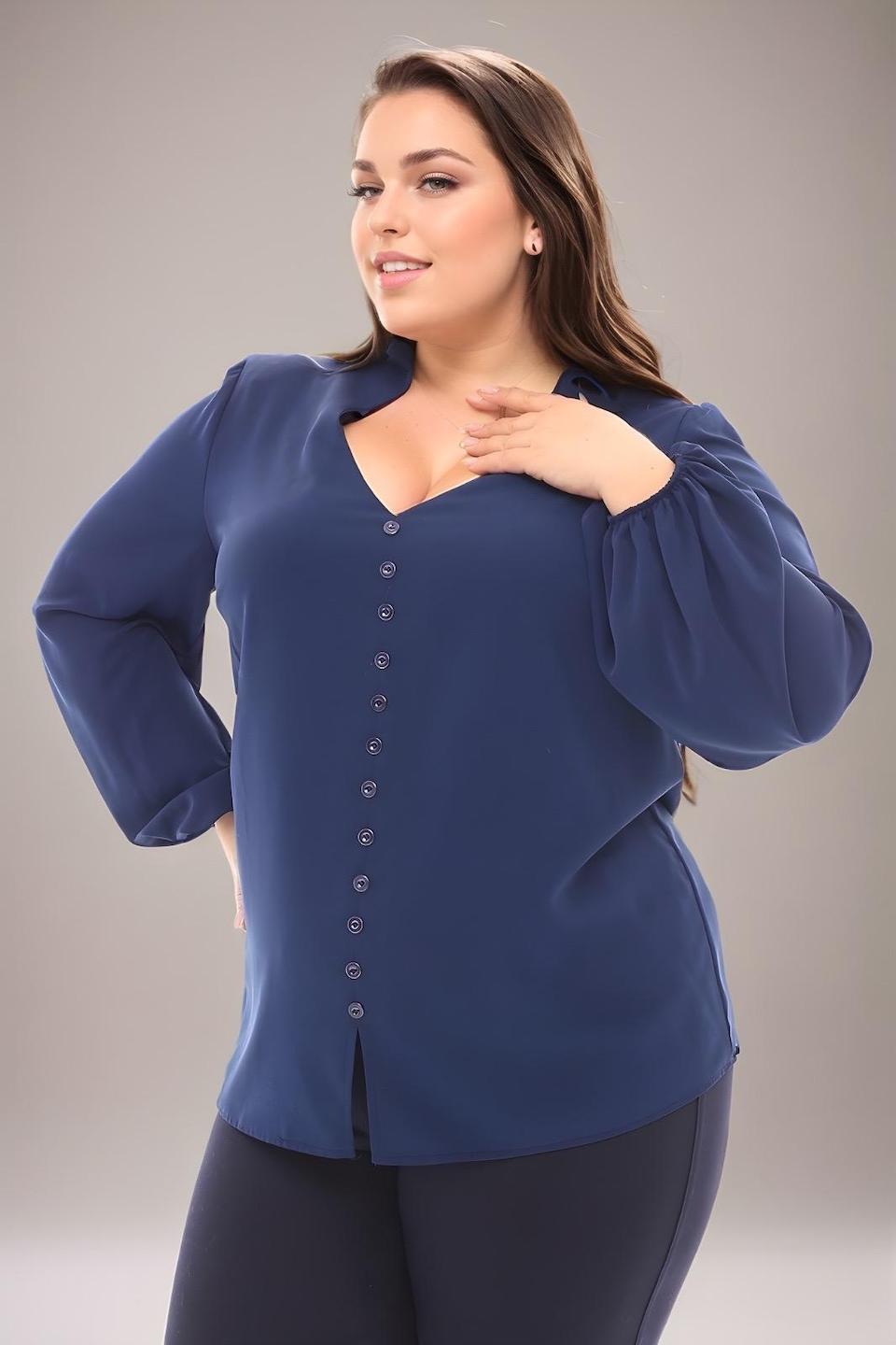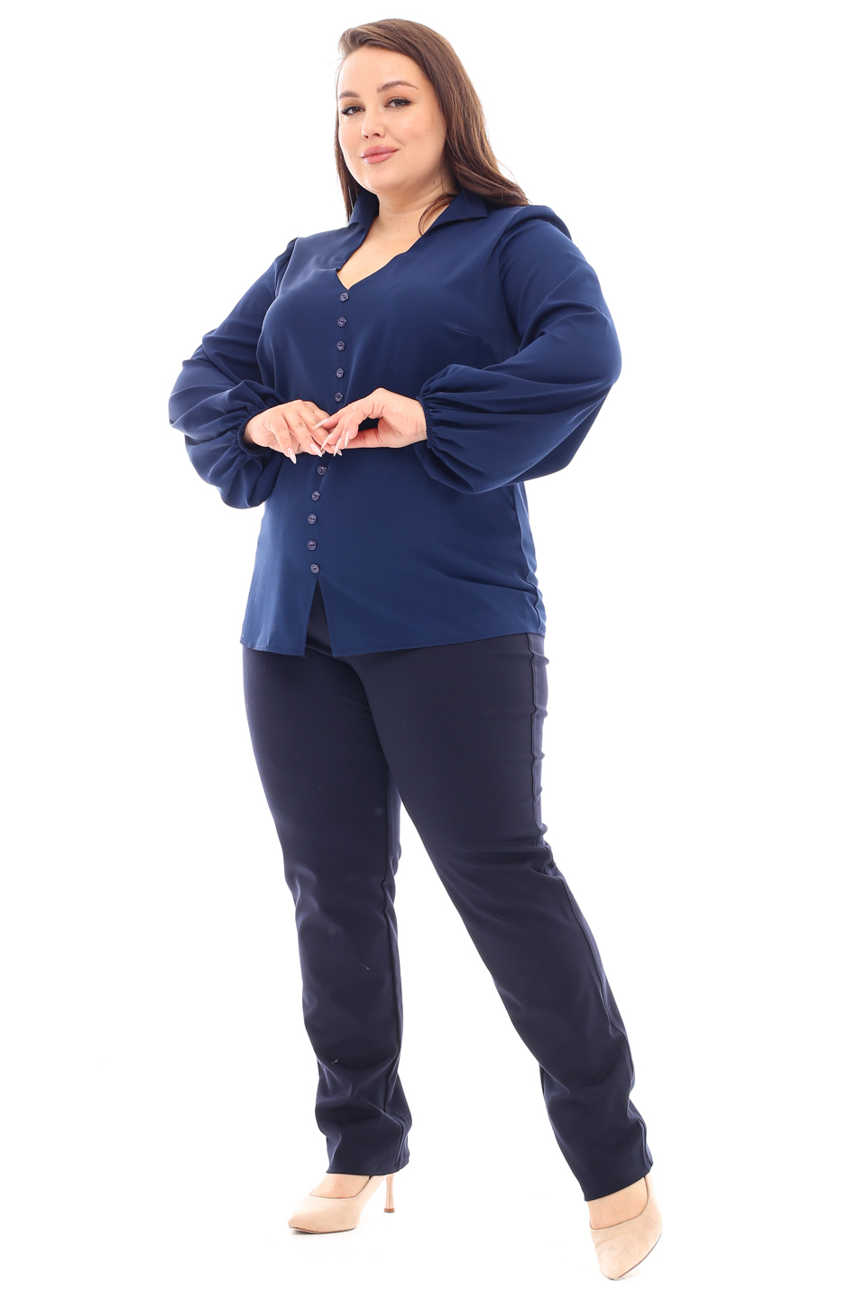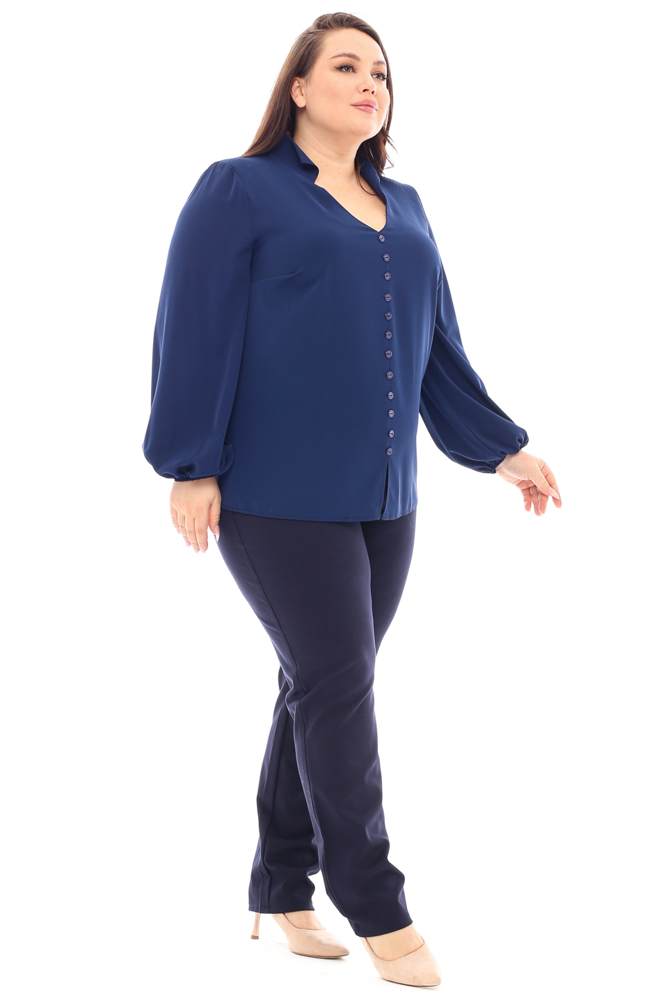 Блузка ворот стойка с пуговками по центру темно-синяя