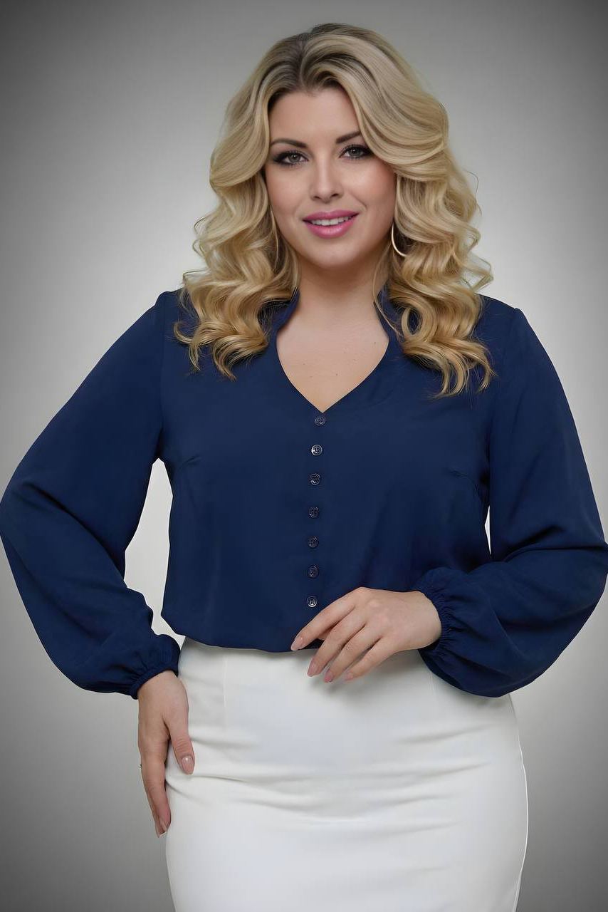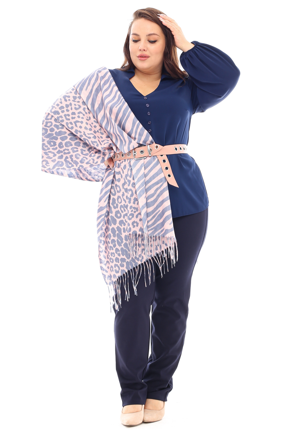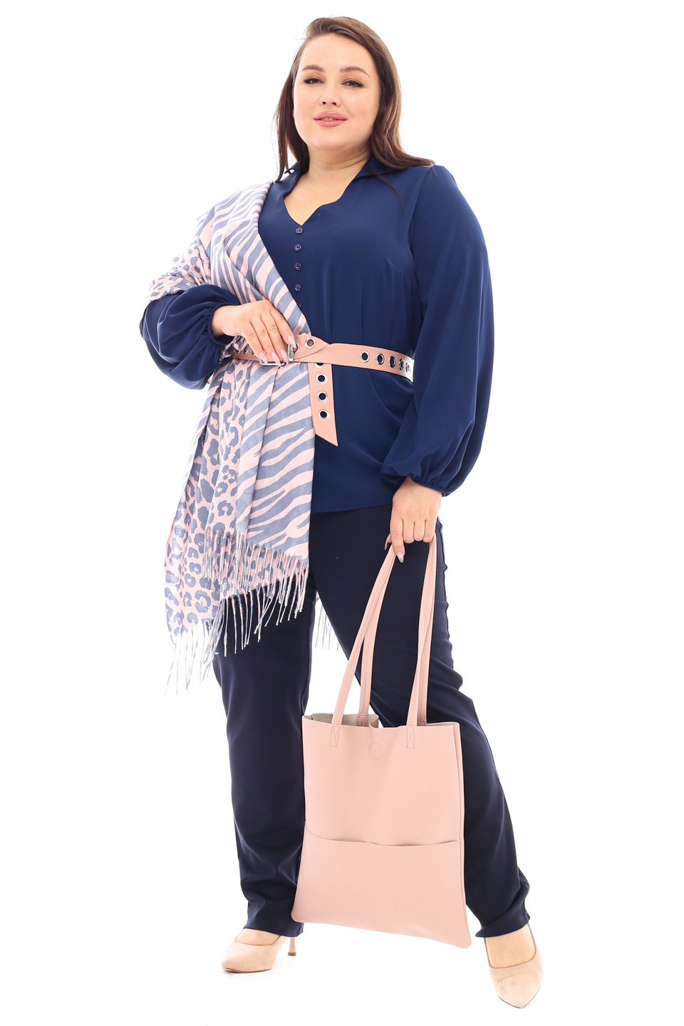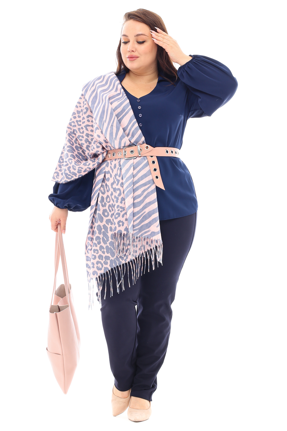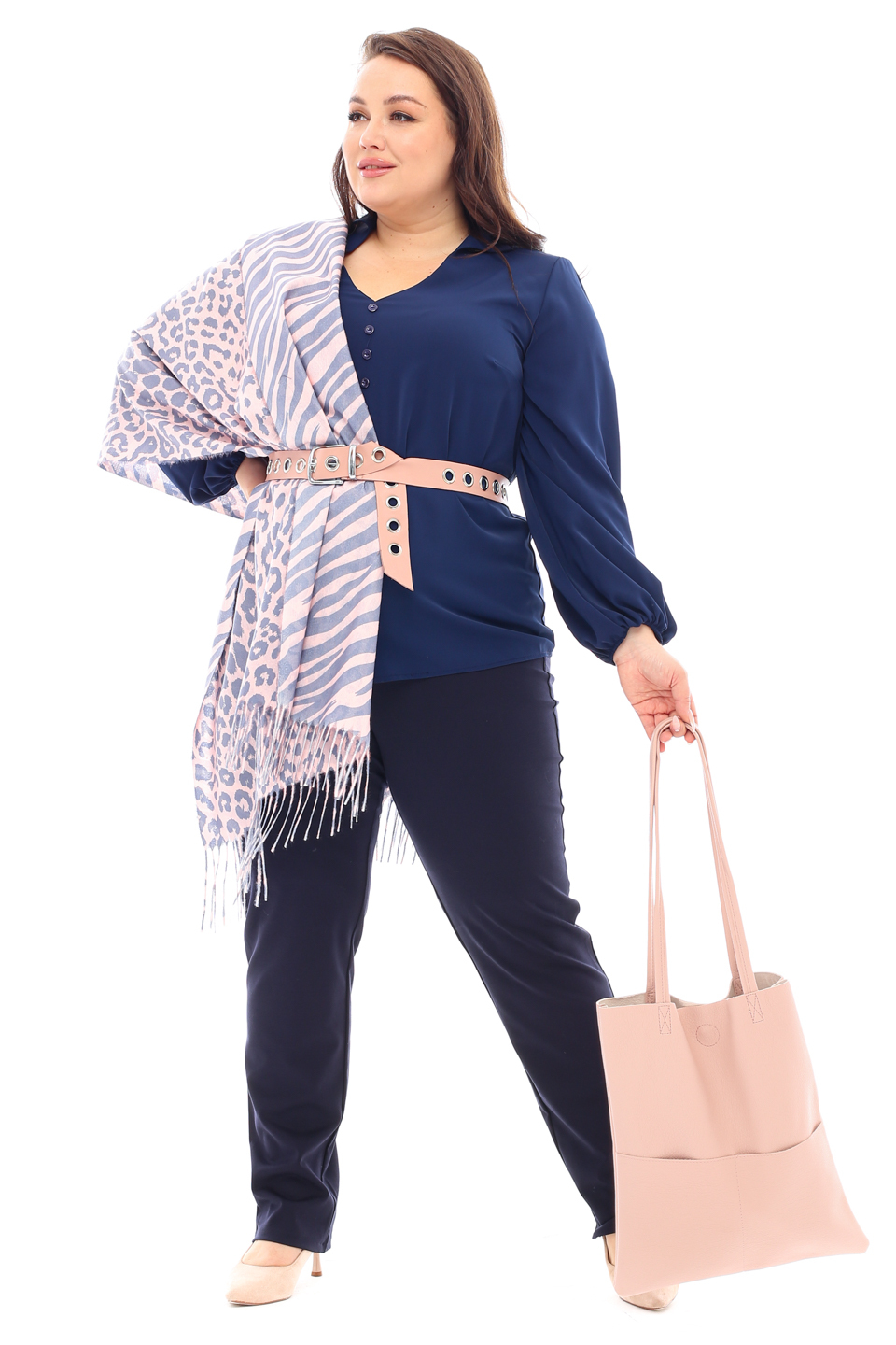 Блузка ворот стойка с пуговками по центру темно-синяя