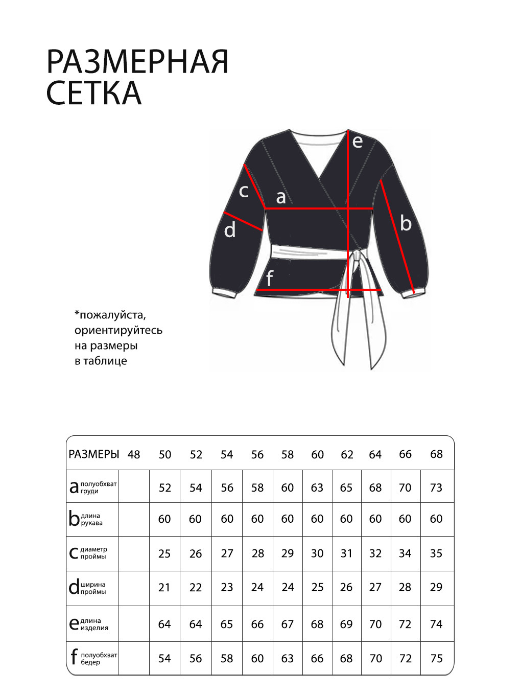 Просим обратить внимание, что в таблице приведены замеры фигуры, а не изделия.