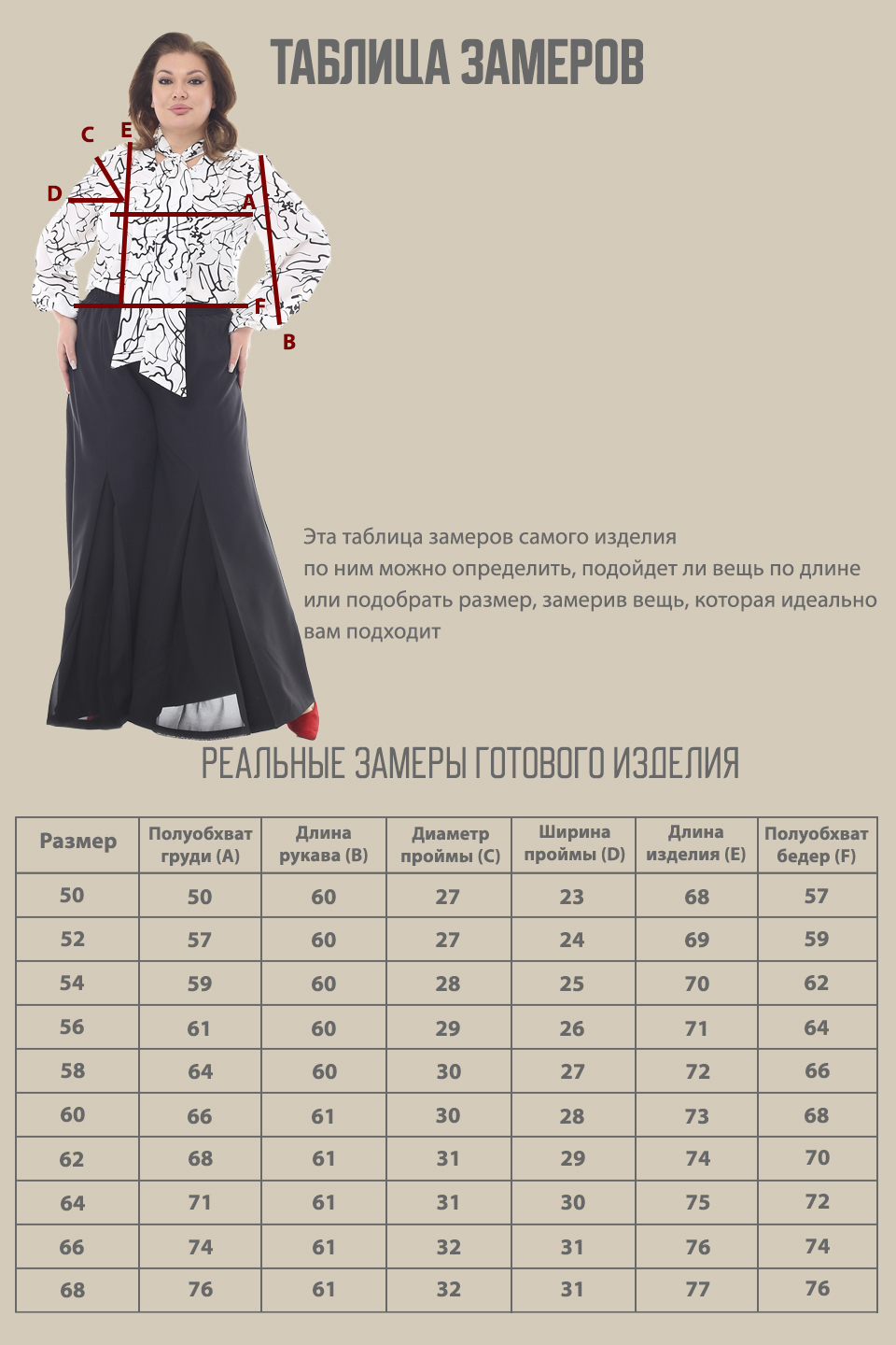 Просим обратить внимание, что в таблице приведены замеры фигуры, а не изделия.