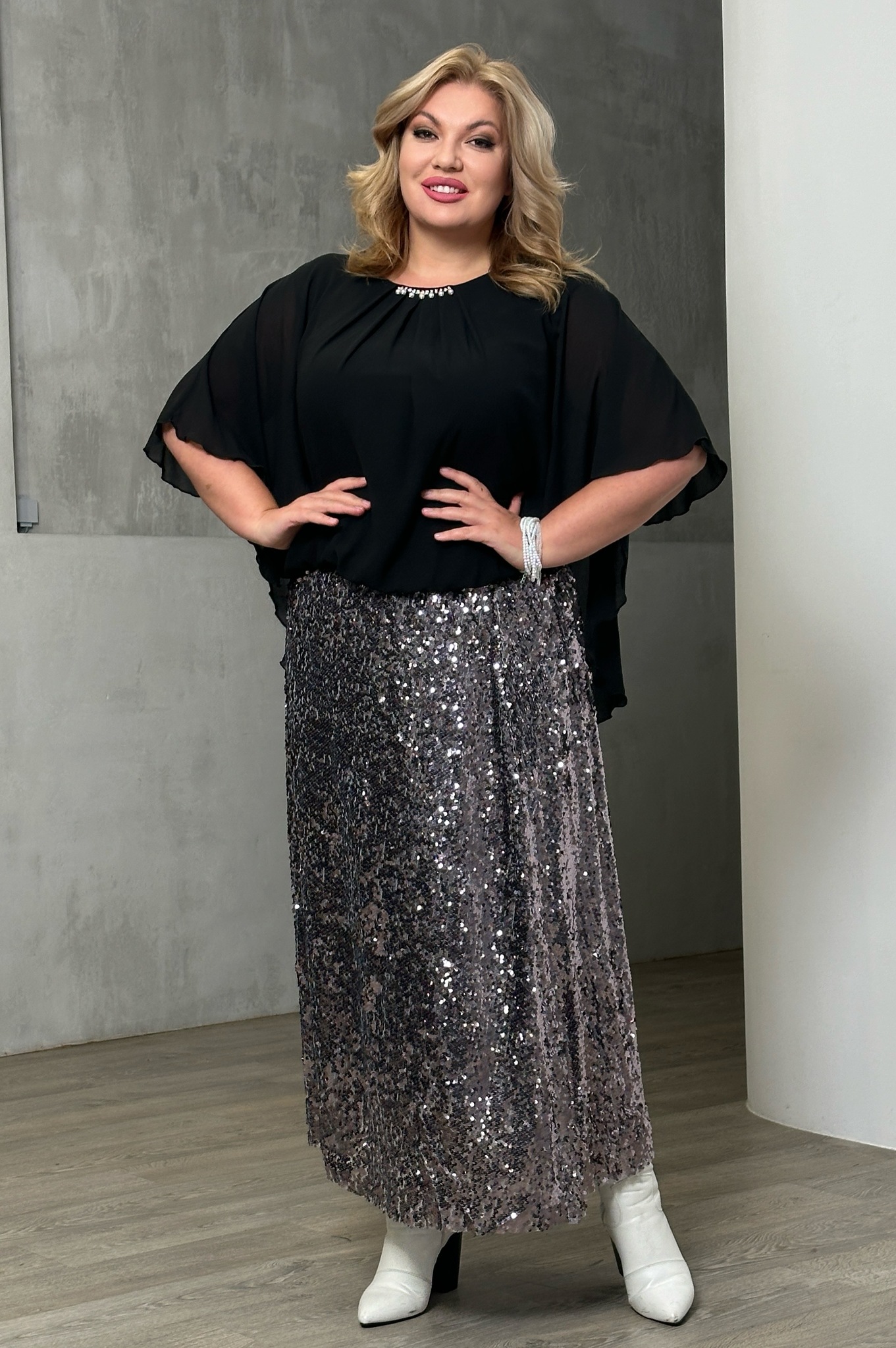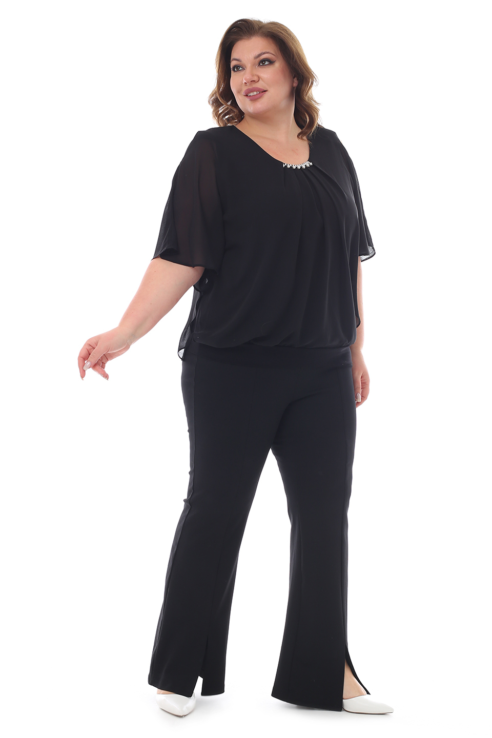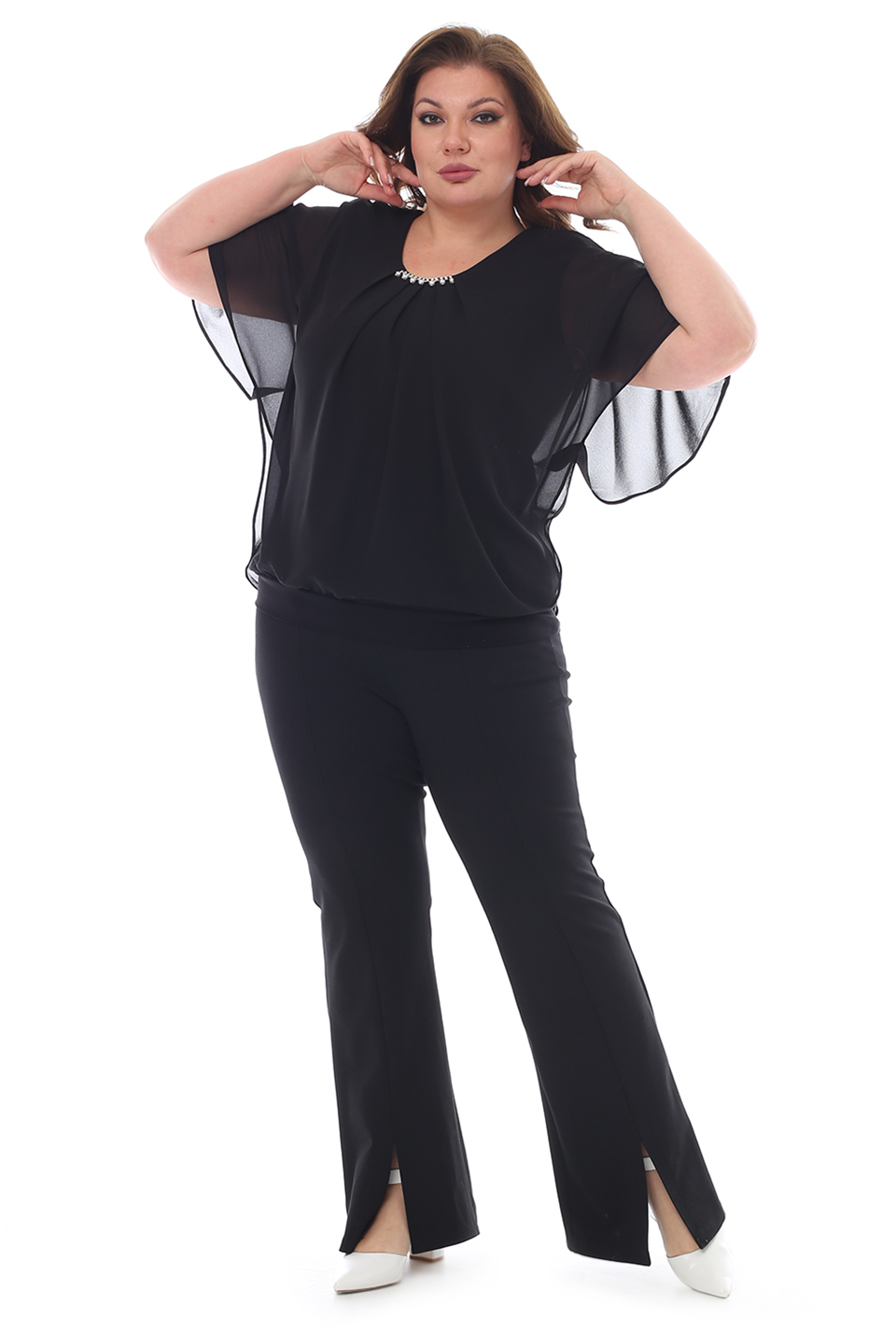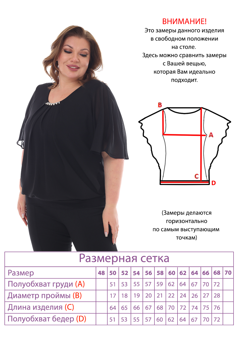 Блузка свободного кроя из мягкого шифона на эластичной подкладе. круглый вырез на груди декорирован небольшими складками и стразами, что добавляет образу блеска и изящества. прозрачные шифоновые рукава придают воздушности и лёгкости. свободный силуэт искусно обыгрывает фигуру и не сковывает движений. притачная резинка по низу способствует оптимальной посадке по фигуре. модель легко сочетается с любым низом, поэтому скомбинировать чудесный и стильный образ с юбками, легинсами, брюками не составит труда.