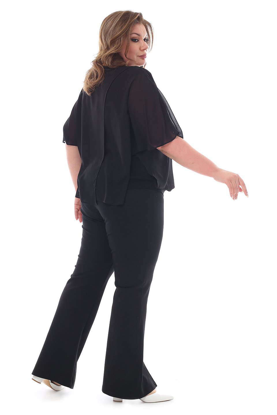 Блузка шифон "летучая мышь" со сборками на груди черная