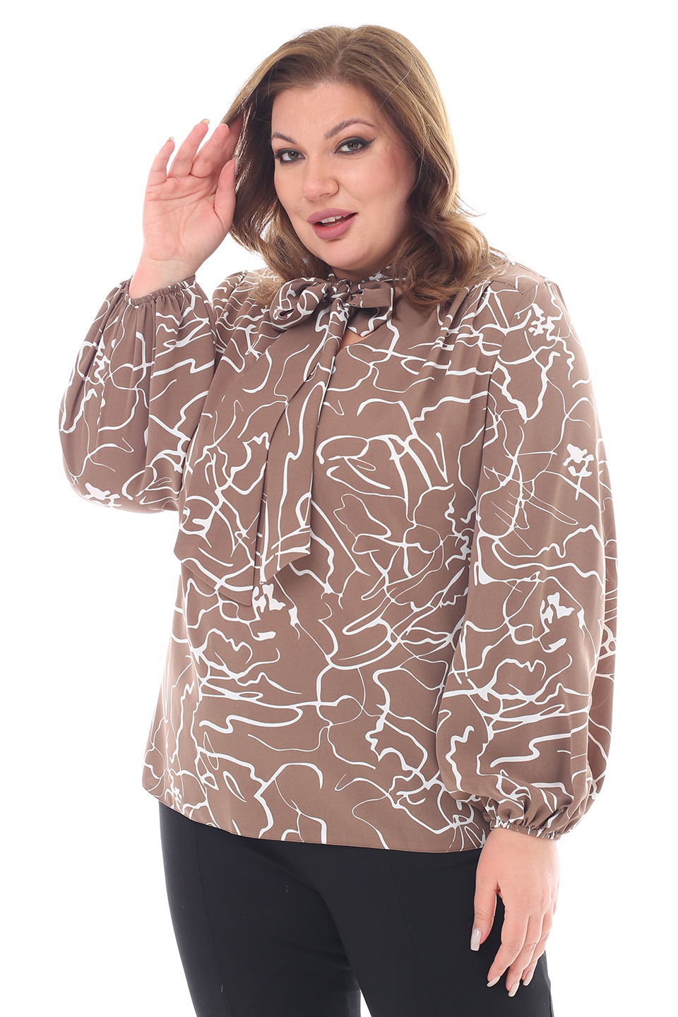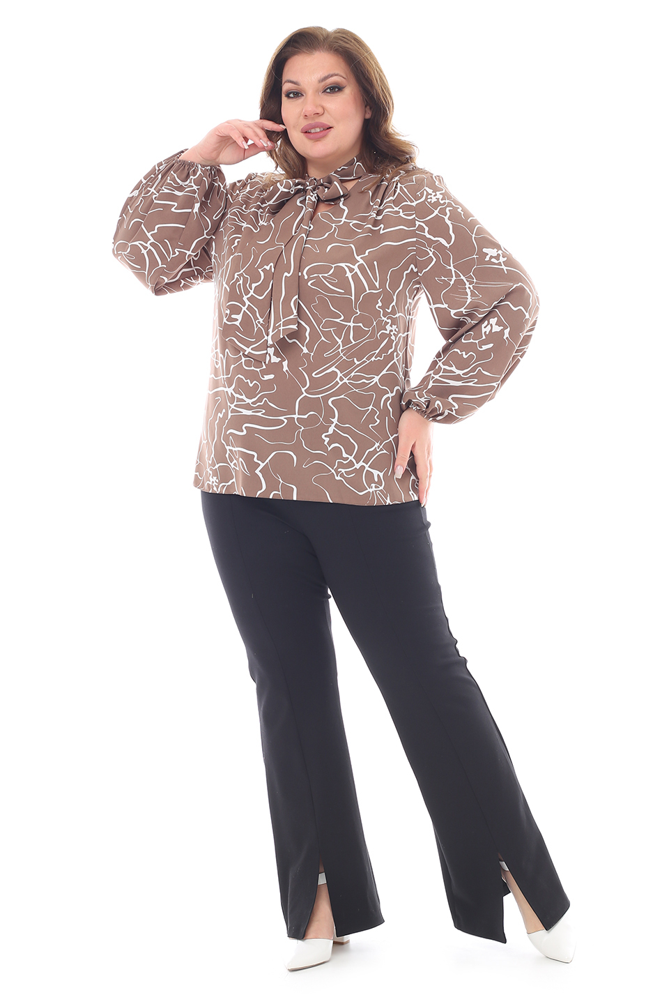Блузка "v-вырез" с завязкой на вороте белые линии капучино