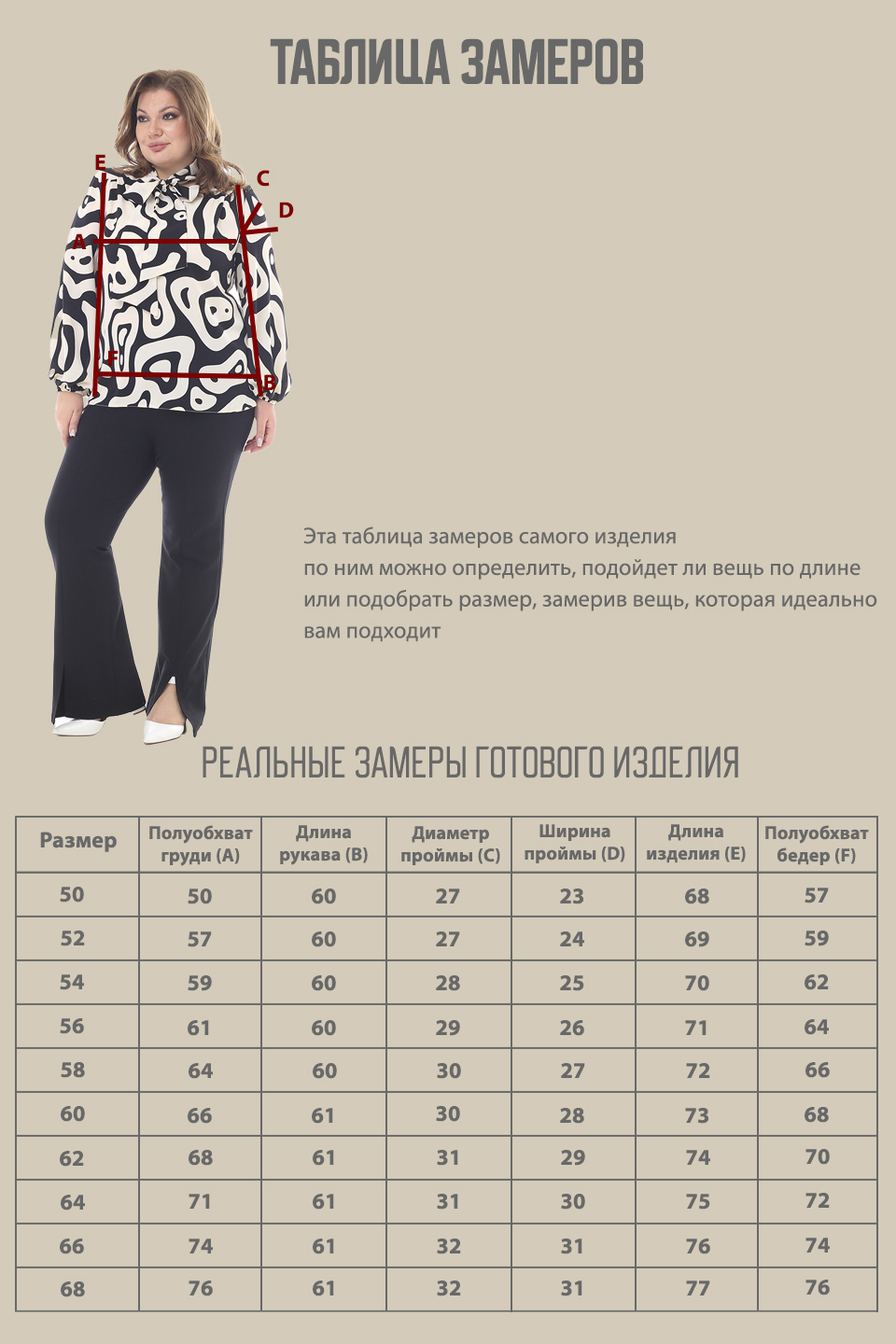 Просим обратить внимание, что в таблице приведены замеры фигуры, а не изделия.