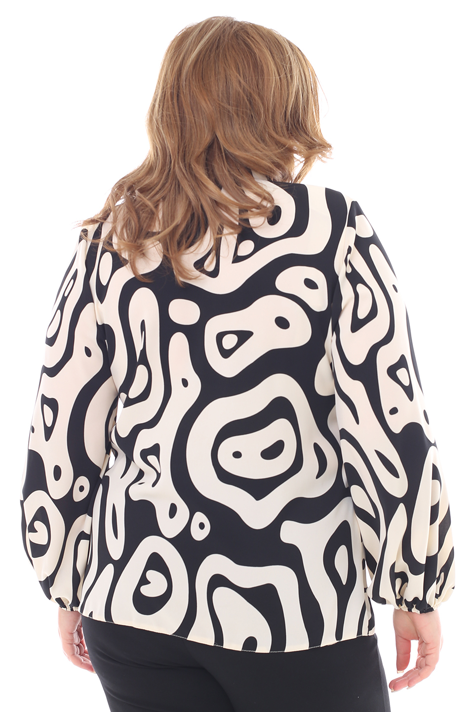 Оригинальная блузка из мягкого струящегося материала. рукава полной длины по низу присобраны тонкой резинкой. женственный v-образный вырез дополнен лентами-завязками, которые можно красиво завязать на шее. небольшие складки на плечах обеспечивают оптимальную посадку по фигуре. актуальный принт добавляет модели динамичности и освежает образ. аккуратные подплечники зрительно вытягивают силуэт и визуально стройнят. мягкий, приятный телу материал подарит комфорт на весь день. вы можете комбинировать блузку как с юбками различной длины, так и с брюками и джинсами.