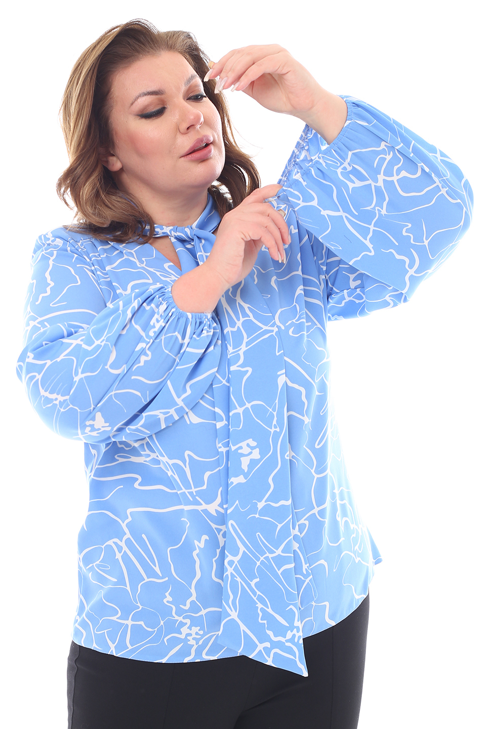 Оригинальная блузка из мягкого струящегося материала. рукава полной длины по низу присобраны тонкой резинкой. женственный v-образный вырез дополнен лентами-завязками, которые можно красиво завязать на шее. небольшие складки на плечах обеспечивают оптимальную посадку по фигуре. актуальный принт добавляет модели динамичности и освежает образ. аккуратные подплечники зрительно вытягивают силуэт и визуально стройнят. мягкий, приятный телу материал подарит комфорт на весь день. вы можете комбинировать блузку как с юбками различной длины, так и с брюками и джинсами.