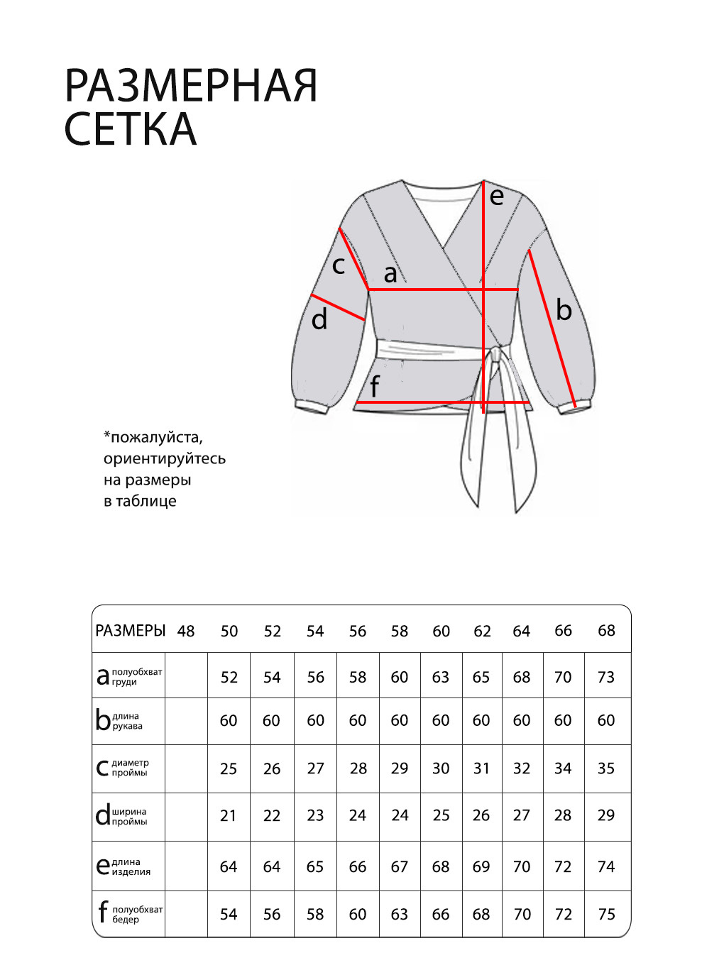 Просим обратить внимание, что в таблице приведены замеры фигуры, а не изделия.