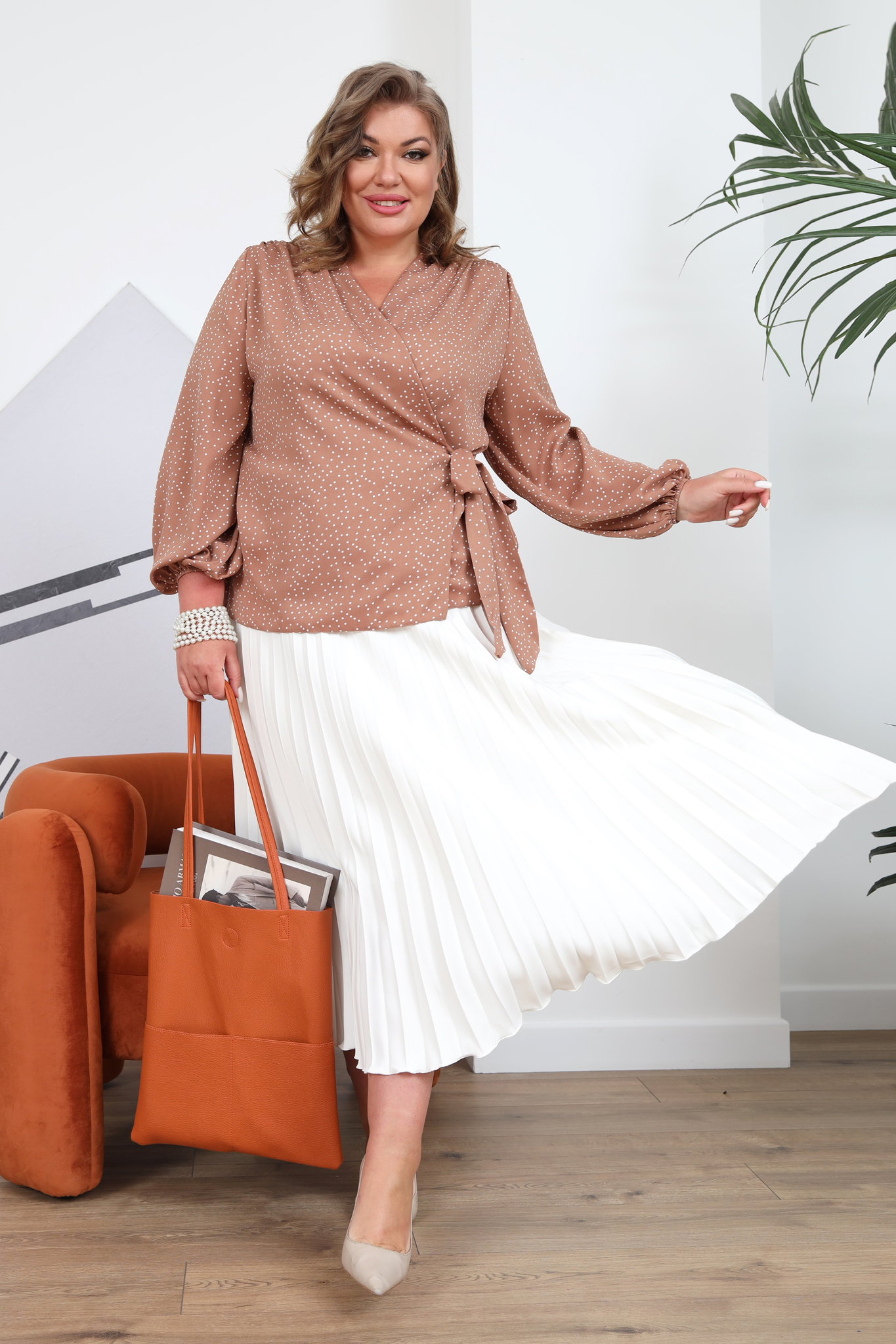 Блузка с запахом с завязкой "мелкий горох" капучино