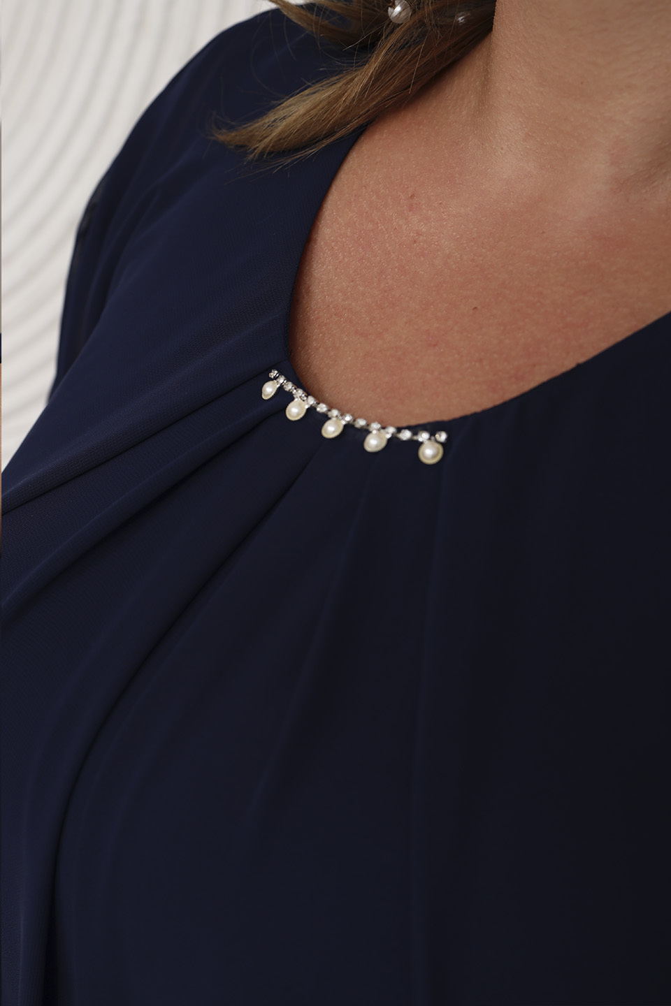 Блузка шифон "летучая мышь" со сборками на груди темно-синяя