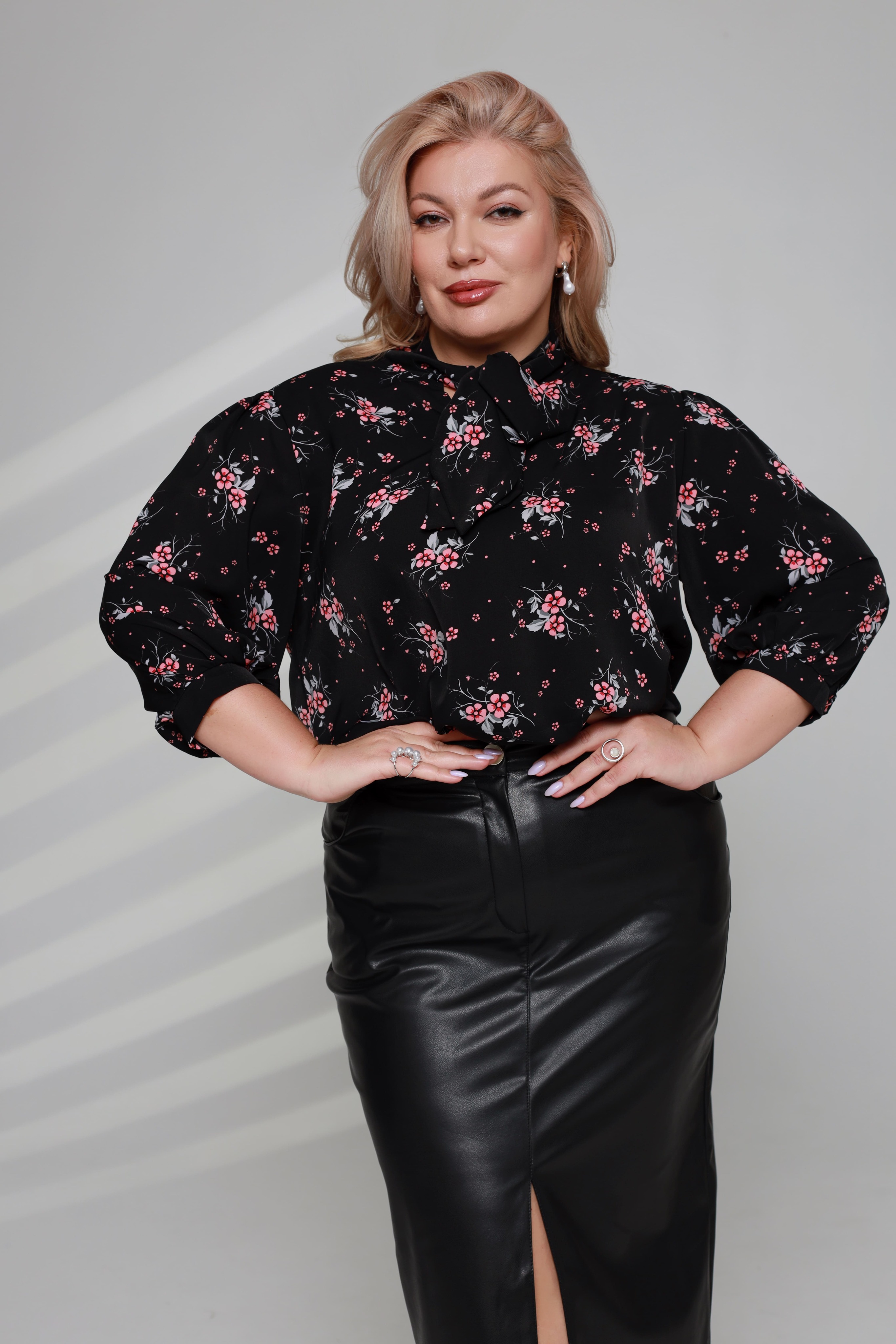 Оригинальная блузка из мягкого струящегося материала. рукава длиной 3/4 присобраны по низу узкой манжетой. женственный круглый вырез с разрезом на груди дополнен завязками. актуальный растительный принт добавляет модели динамичности и освежает образ. мягкий, приятный телу материал подарит комфорт на весь день. вы можете комбинировать блузку как с юбками различной длины, так и с брюками и джинсами. эта модель станет незаменимым элементом вашего гардероба, подчеркивая индивидуальность и женственность.