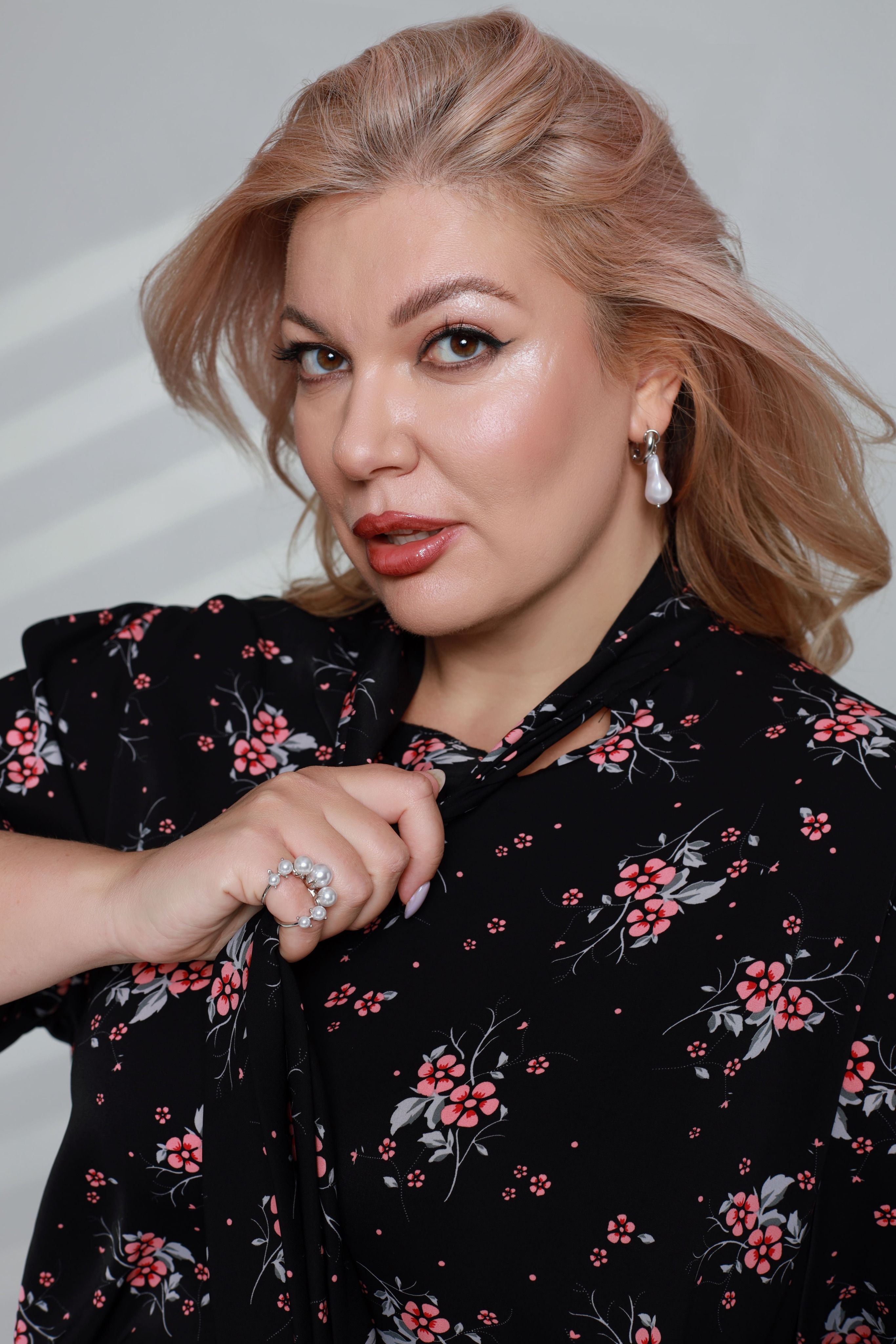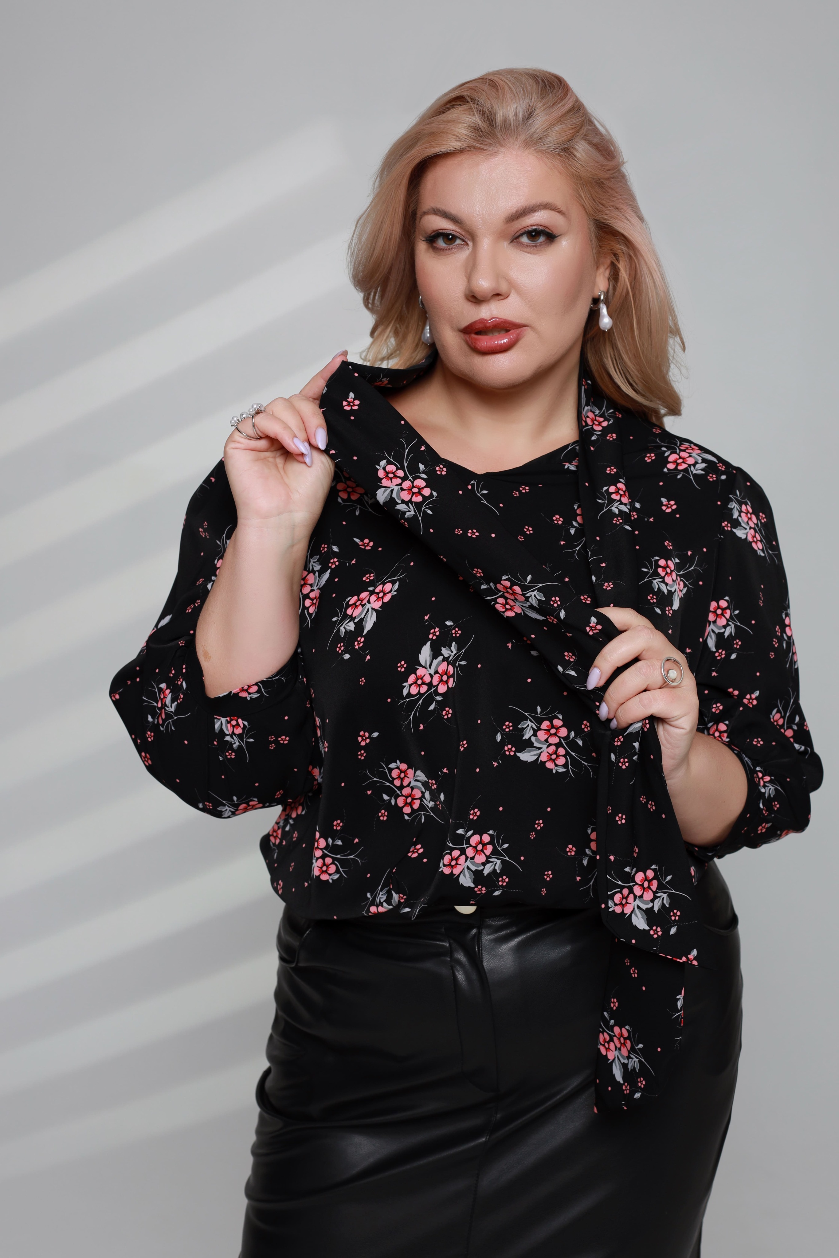 Блузка с завязкой на шее в цветочный принт черная