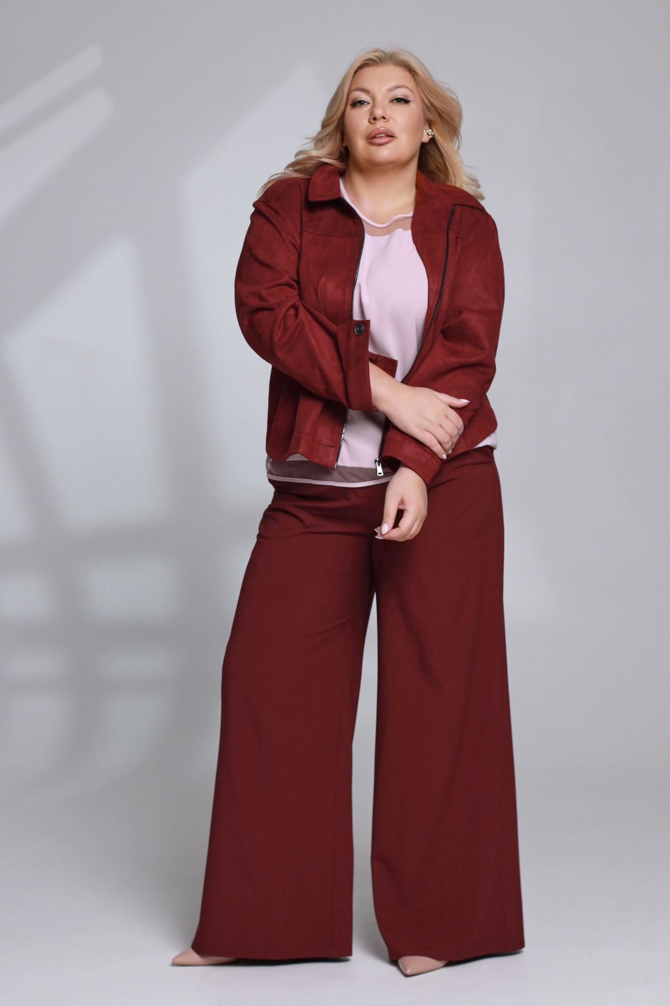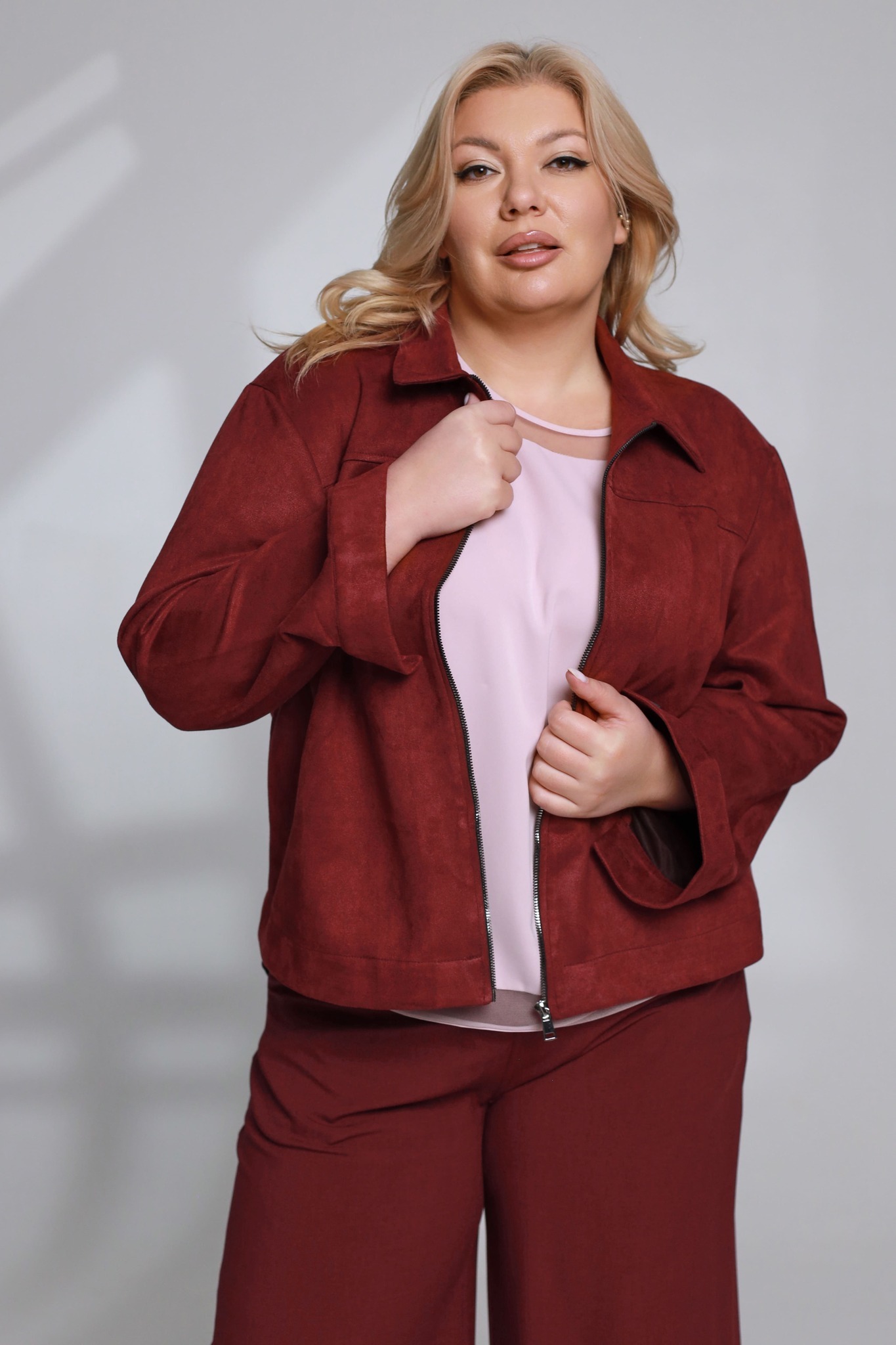 Бомбер замшевый с молнией бордовый