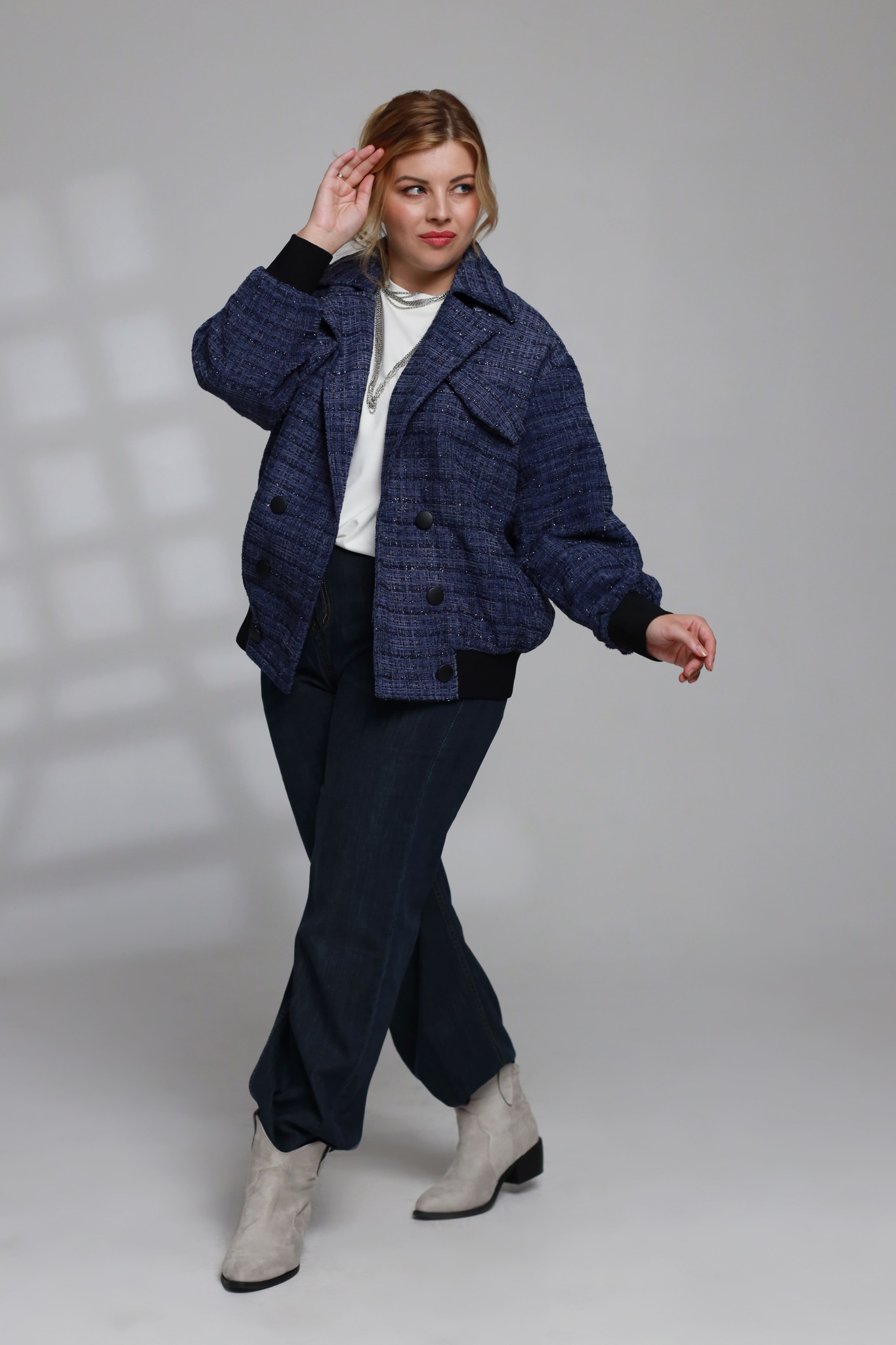 Стильный двубортный жакет свободного кроя из мягкого фактурного материала на пуговицах. английский воротник, длинные свободные рукава с прямыми манжетами-резинками, 2 удобных практичных кармана, которые позволяют хранить необходимые вещи под рукой. послужит прекрасным дополнением к вашему гардеробу.