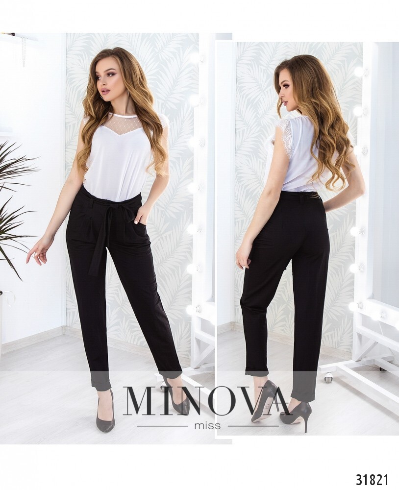 48 р-р: длина брюк по внутреннему шву 70см, длина брюк по внешнему шву с учетом пояса 98см, от – 79см, об – 97см.