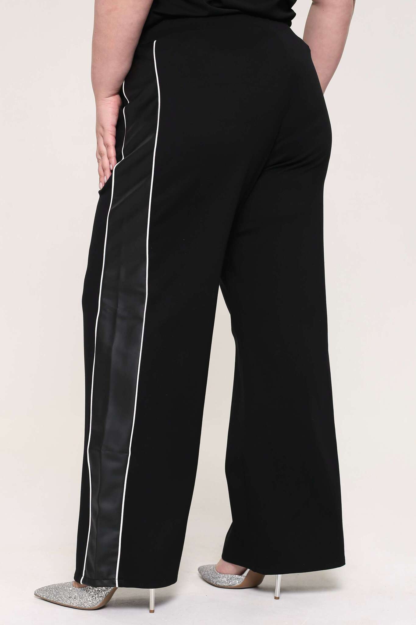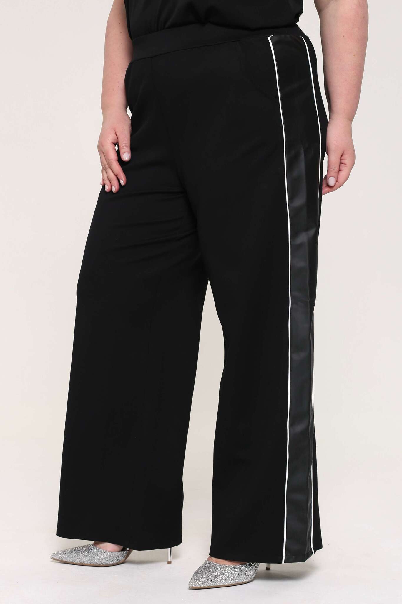 Оригинальные брюки свободного кроя выполнены из мягкого материала. завышенная линия талии и эластичная резинка на поясе обеспечивают оптимальную посадку по фигуре. модель привлекает внимание широким клешем. кожаные лампасы по бокам освежают образ и зрительно вытягивают силуэт. боковые карманы добавляют практичности. подходят такие вещи представительницам прекрасного пола с разными типами фигуры. прекрасно подойдут для комбинирования с водолазками, свитерами, блузками и рубашками. эти модные брюки станут идеальным вариантом для создания стильного образа.