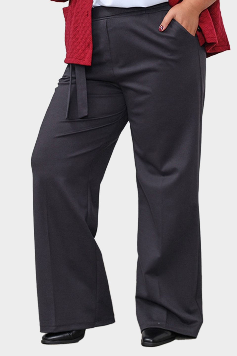 Брюки прямого кроя из мягкого материала имеют высокую линию талии. благодаря удобной резинке на поясе, они отлично сидят на фигуре. широкие брюки-клеш придают модели оригинальность. по бокам расположены практичные карманы. съемный пояс в тон позволяет подчеркнуть талию. для поддержания пояса предусмотрены шлевки. эти брюки подходят женщинам с разными типами фигуры. легкие и гламурные палаццо выгодно подчеркивают фигуру и выделяют из толпы. для завершения стильного образа можно надеть туфли на высоких каблуках.