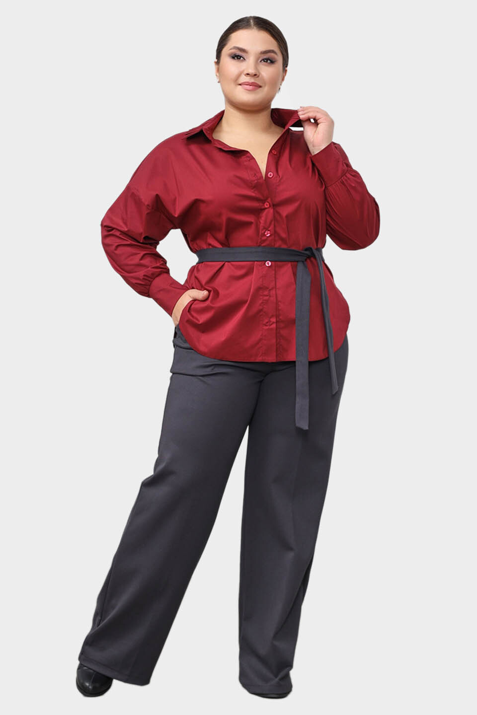 Брюки классические в комплекте с поясом серые