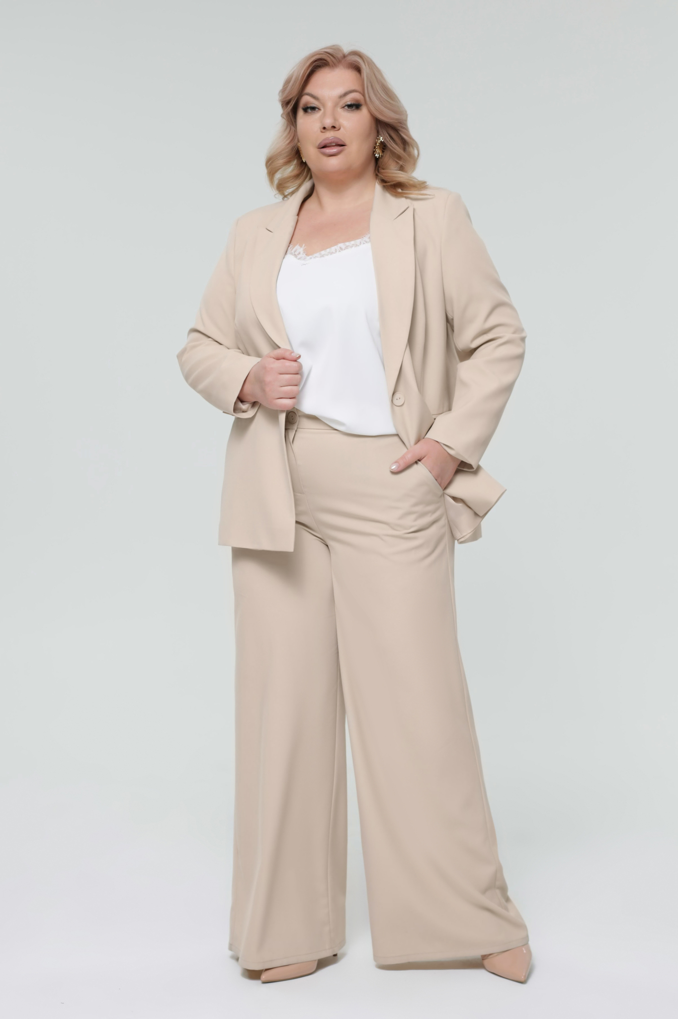 Брюки прямые с карманами бежевые