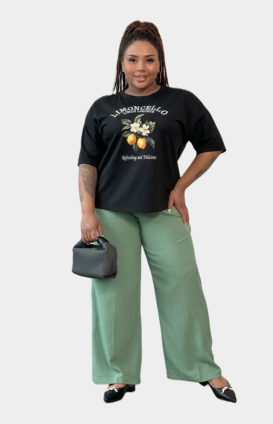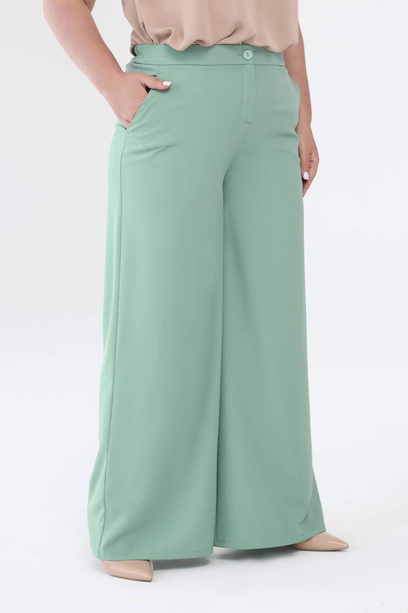 Брюки прямые с карманами полынь