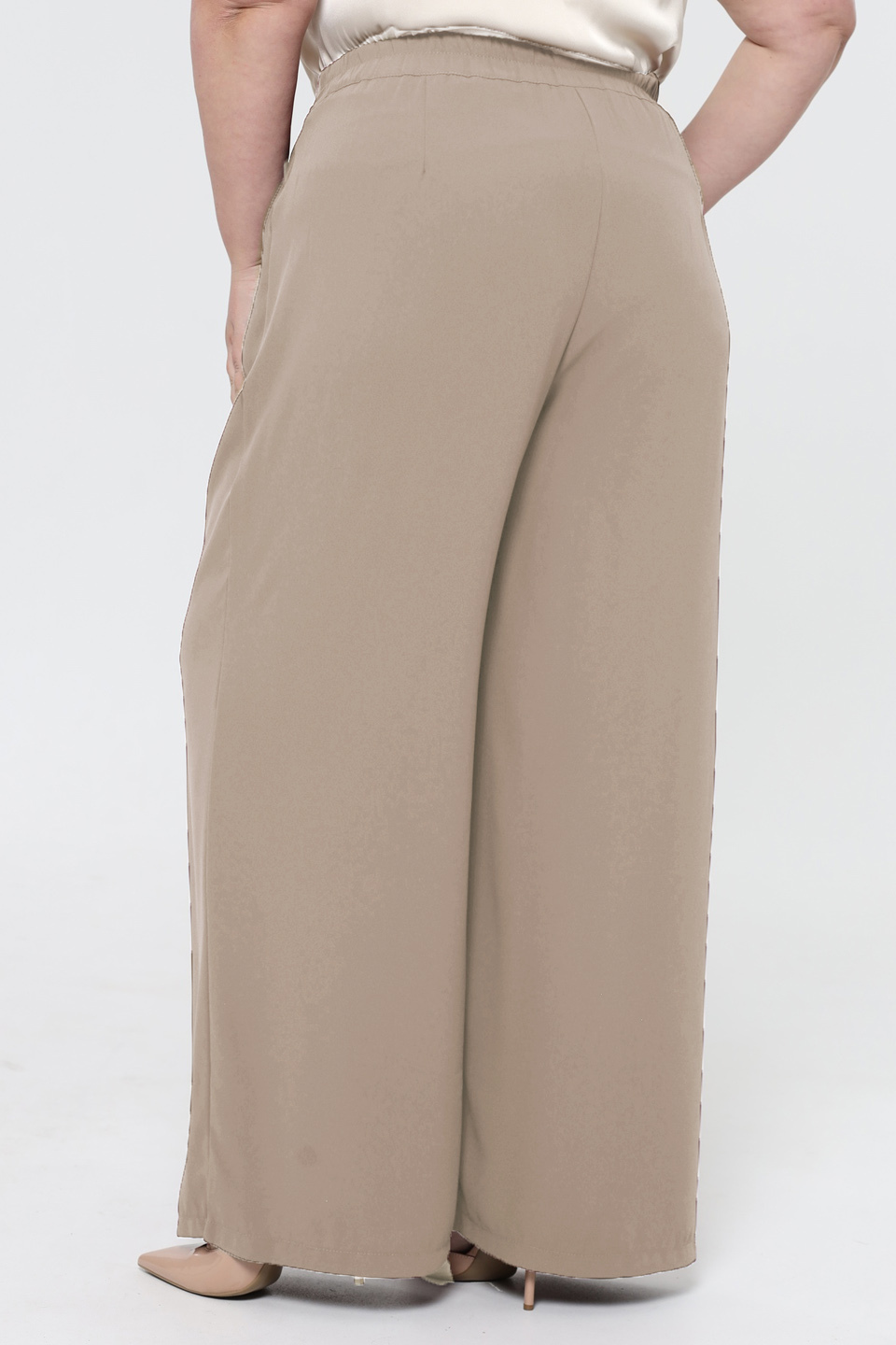 Брюки прямого силуэта отлично сидят за счет эластичной резинки на поясе. модель с комфортной высокой линией талии не сковывает движений. расклешенные брючины со стрелками визуально стройнят и зрительно вытягивают силуэт. боковые карманы добавляют практичности. брюки застёгиваются спереди на скрытую молнию и пуговицу. модель прекрасно подойдёт для комбинирования с водолазками, свитерами, блузками и рубашками. эти модные брюки станут идеальным вариантом для создания стильного образа.