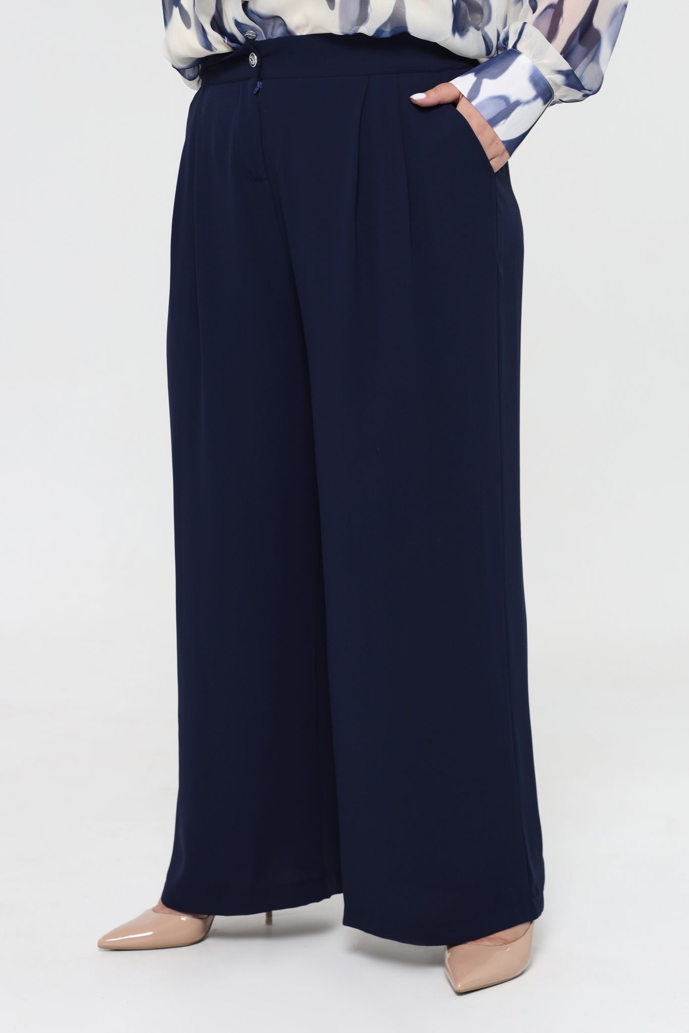 Брюки палаццо с защипами синие