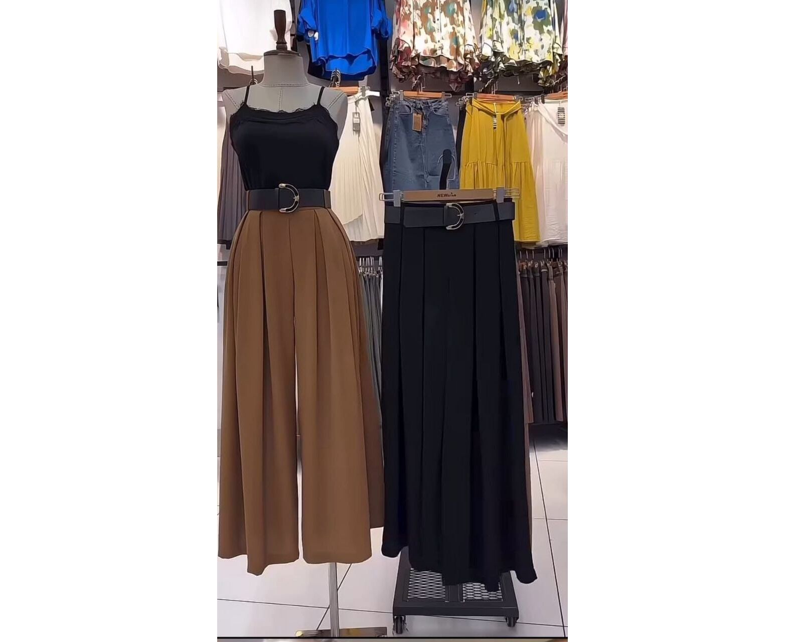 модель имеет расширенный силуэт и глубокие складки спереди, красиво ложащиеся по фигуре и визуально удлиняющие ноги.ткань: костюмка